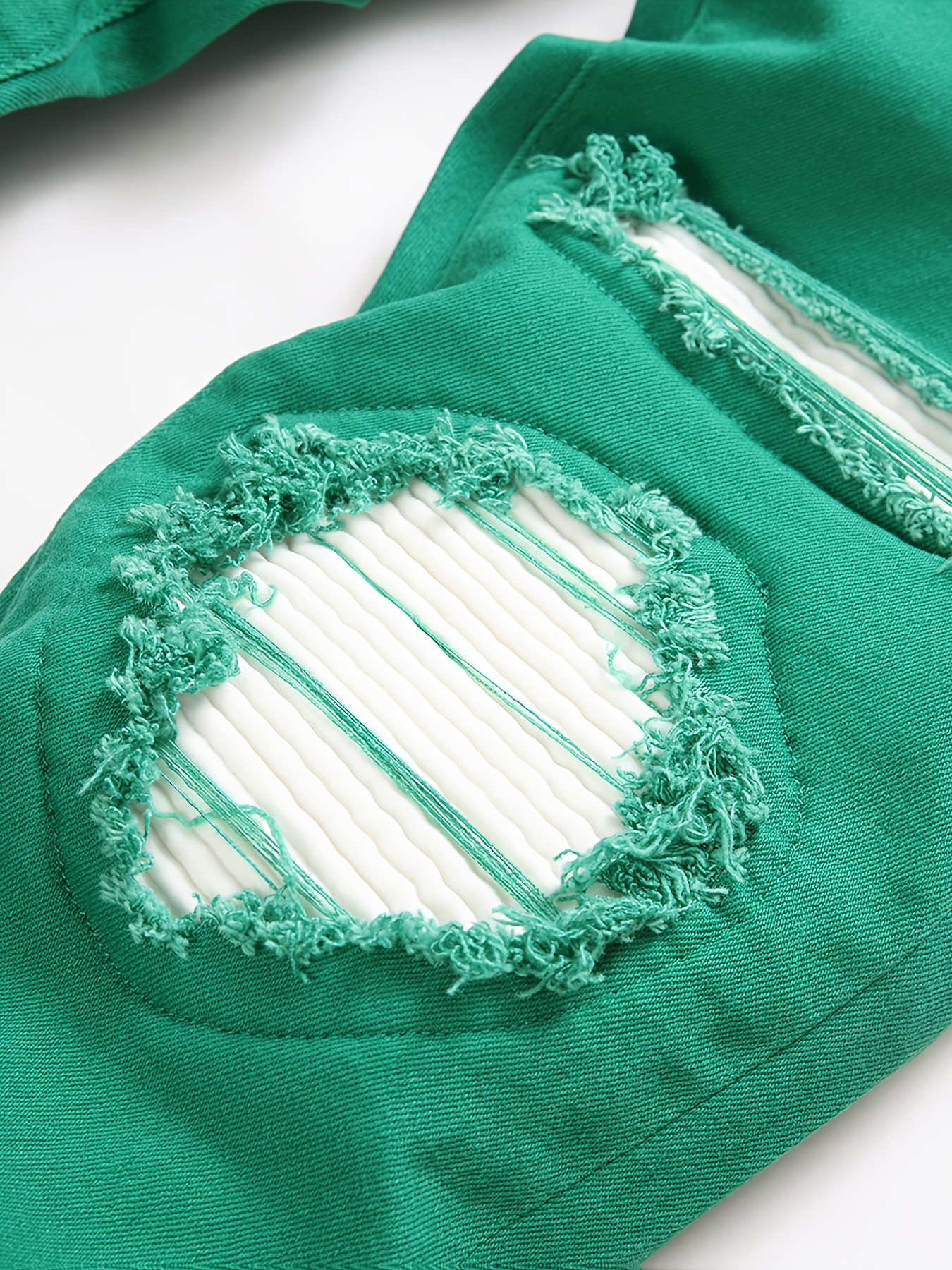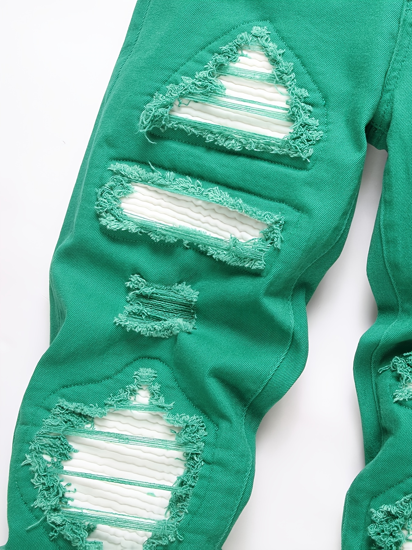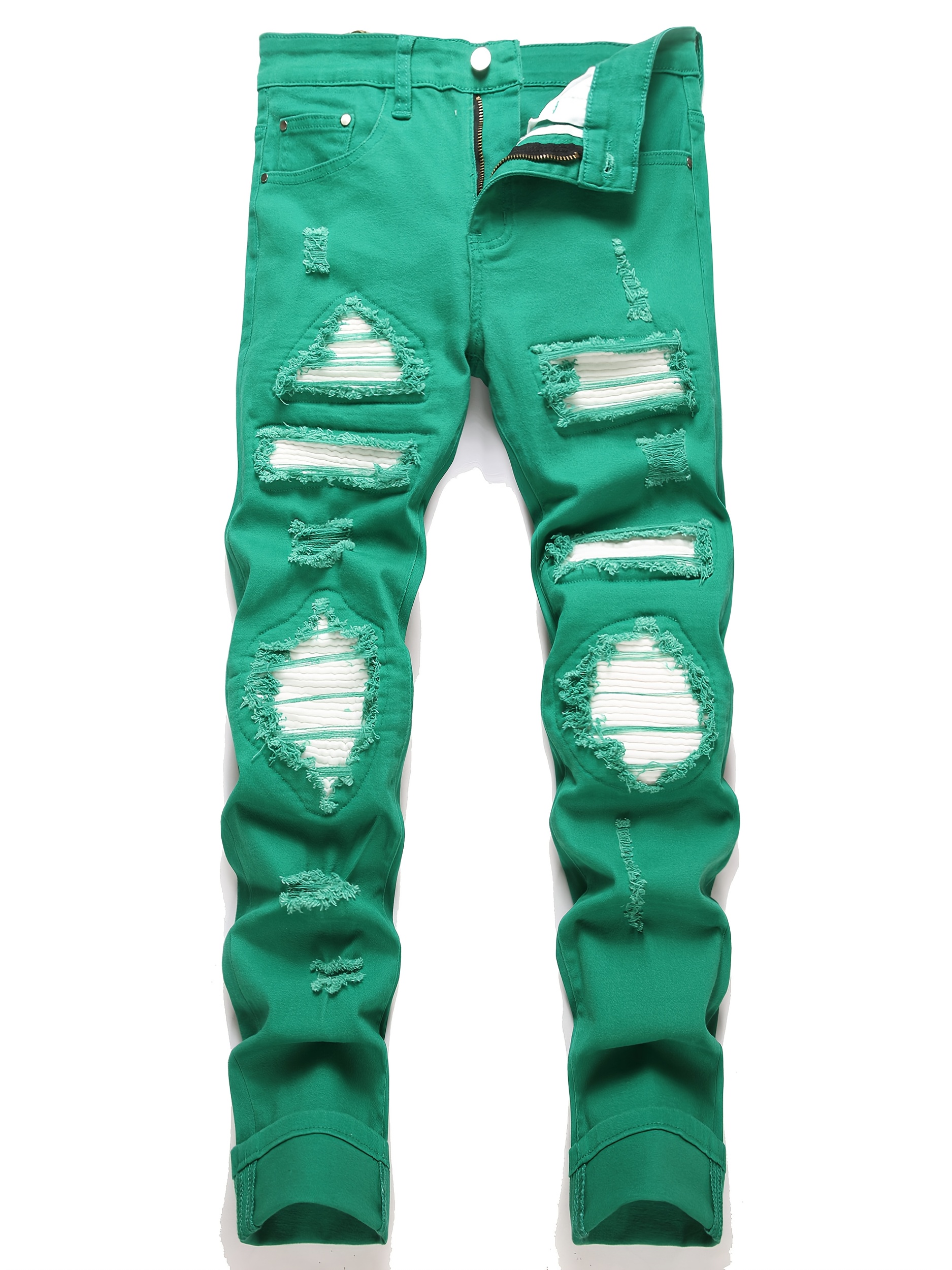 Fashionable Slim-Fit Faux Denim Pants for Men And Women with Ripped Patches And Elastic.