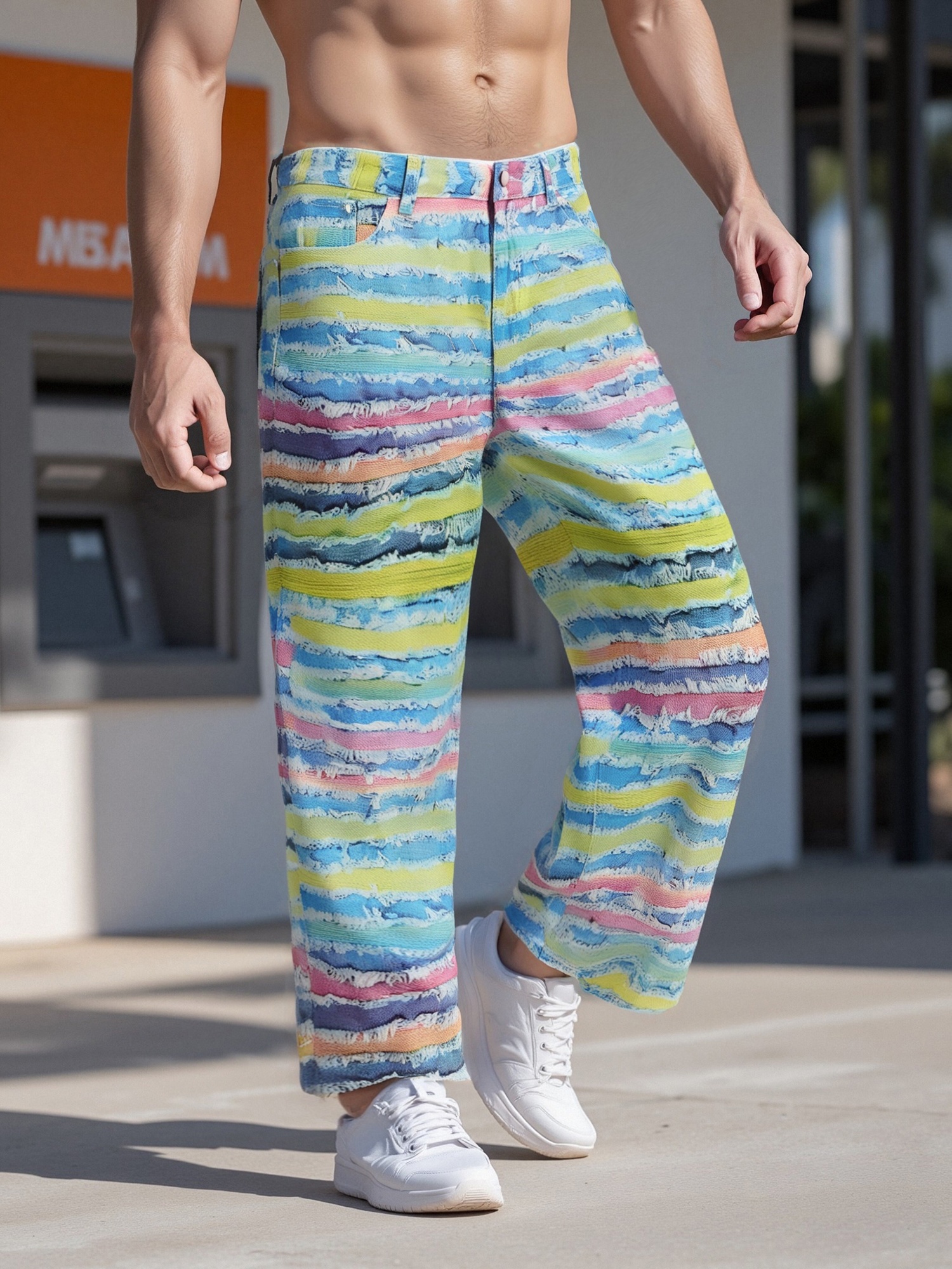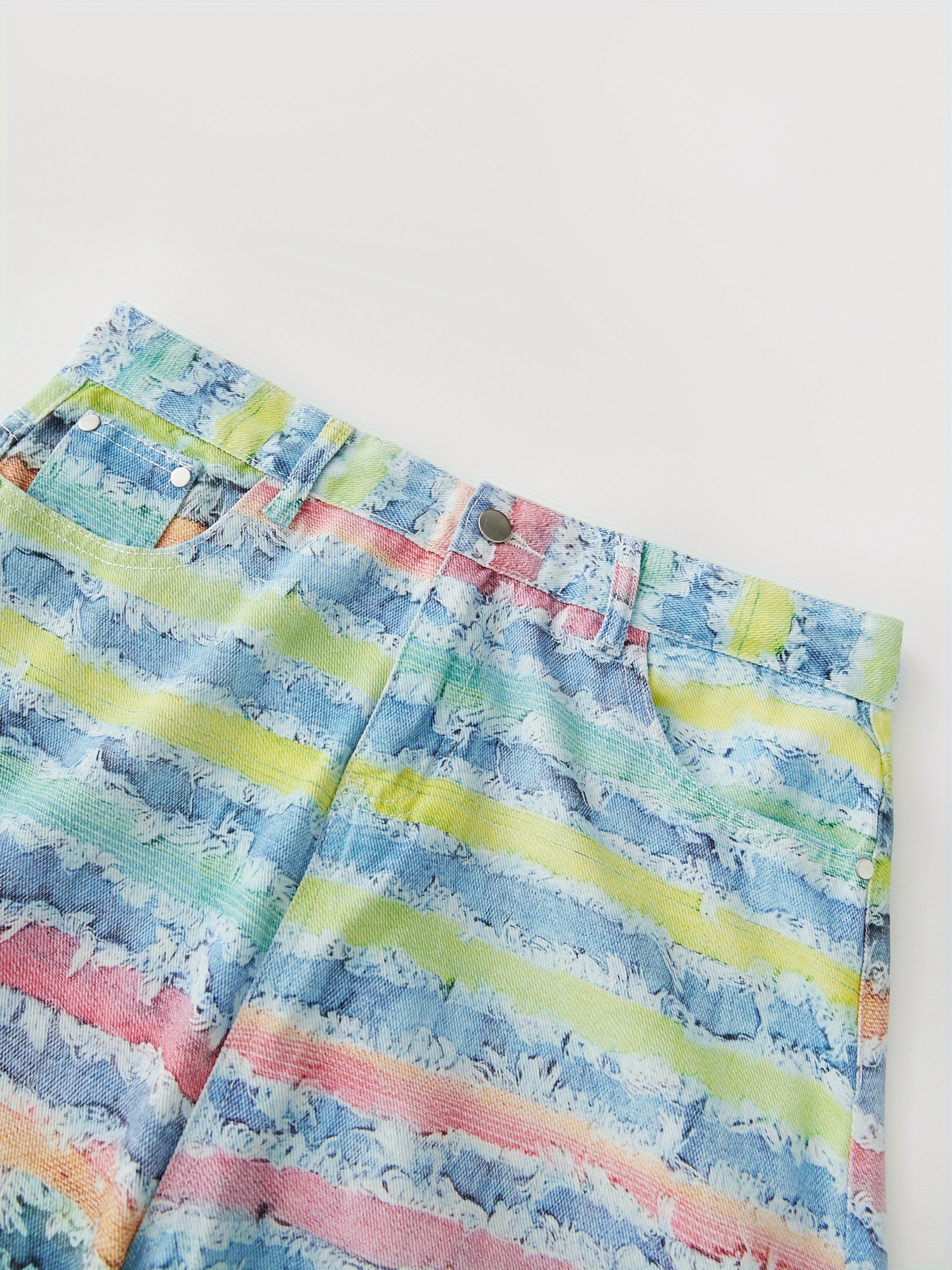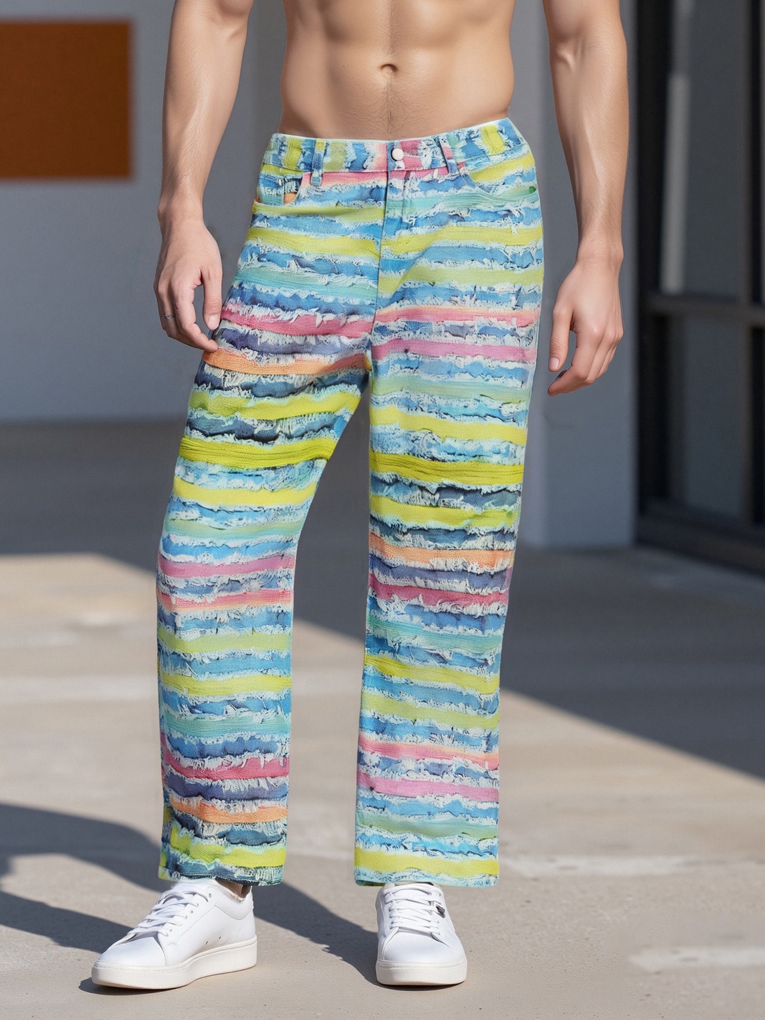 Be the first to review “Men’S Colorful Striped Wide Leg Denim Pants – Rainbow Print Mid-Rise Casual Jeans with Pockets, Loose Fit Button Closure, All-Season Comfort for Casual Attire, Comfortable Clothing | Vibrant Striped Jeans | Nonstretch Fabric” Cancel reply