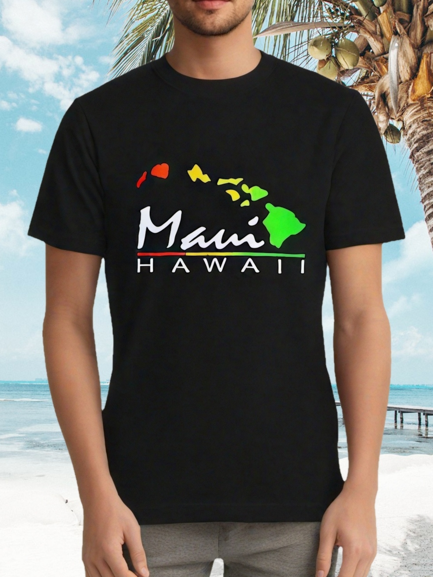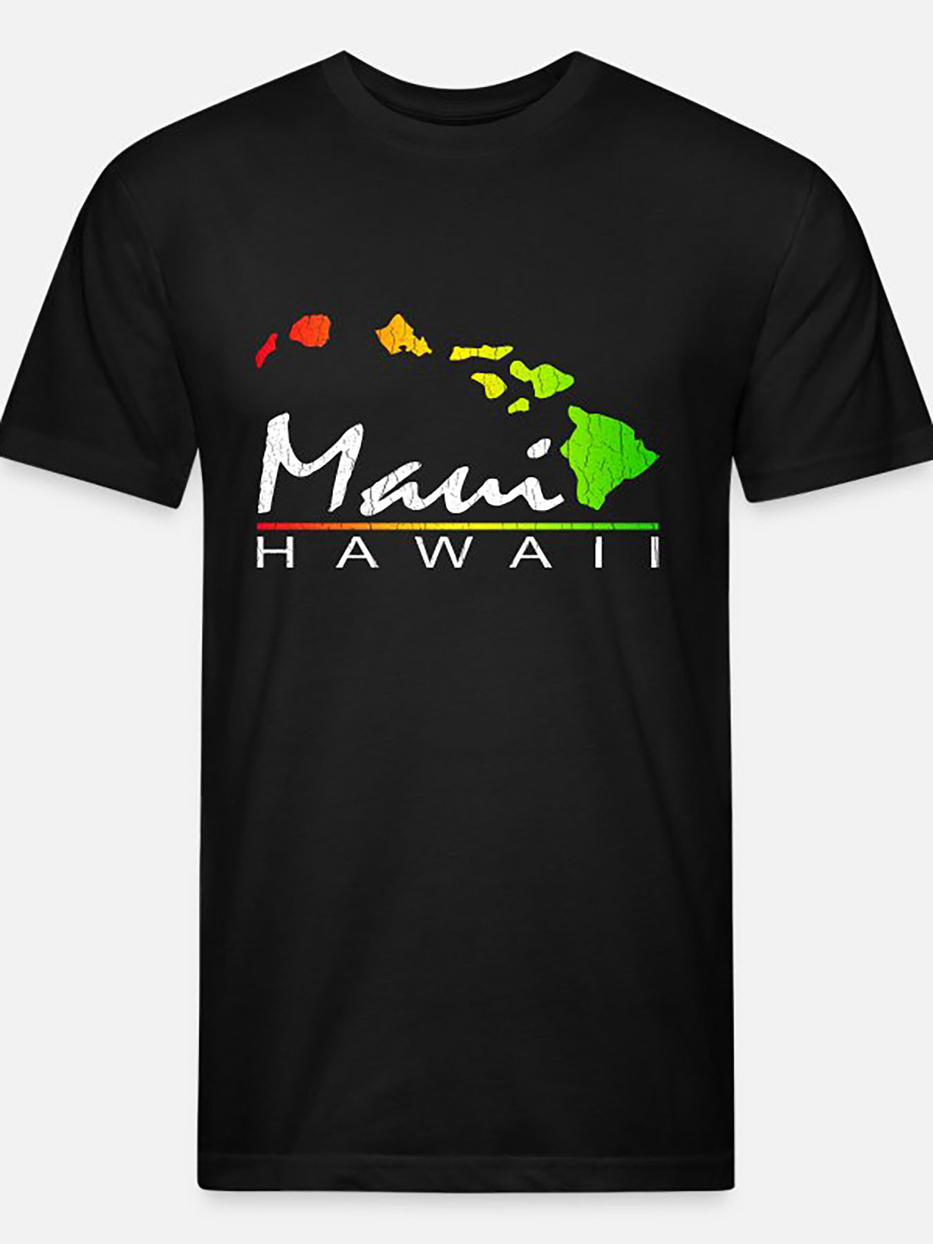 Men’s Maui Hawaii Distressed Graphic T-Shirt – Black Short Sleeve Cotton Casual Tee with Vibrant Island Design, Everyday Tshirt | Bold Lettering Shirt | Glossy Texture Finish