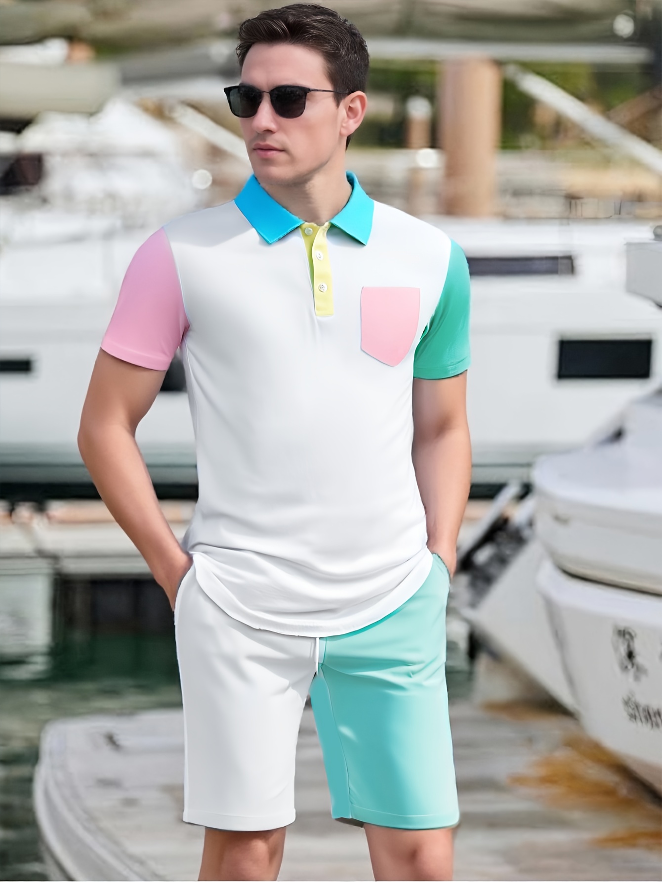 Be the first to review “Men’S Stylish Short Sleeve Polo Shirt And Sweatsuits, Fashion And Color Block Stripes Stamp, Quarter Zipper Collar Lapel Polo Shirt Men’S Suits, Elastic Drawstring Adjustable Waist And Side Pockets Summer Casual Sets, for Sport And Party” Cancel reply