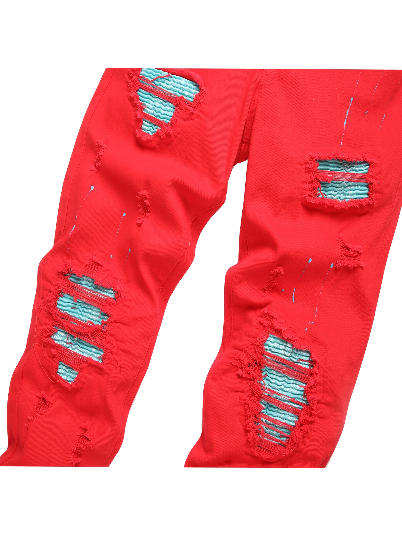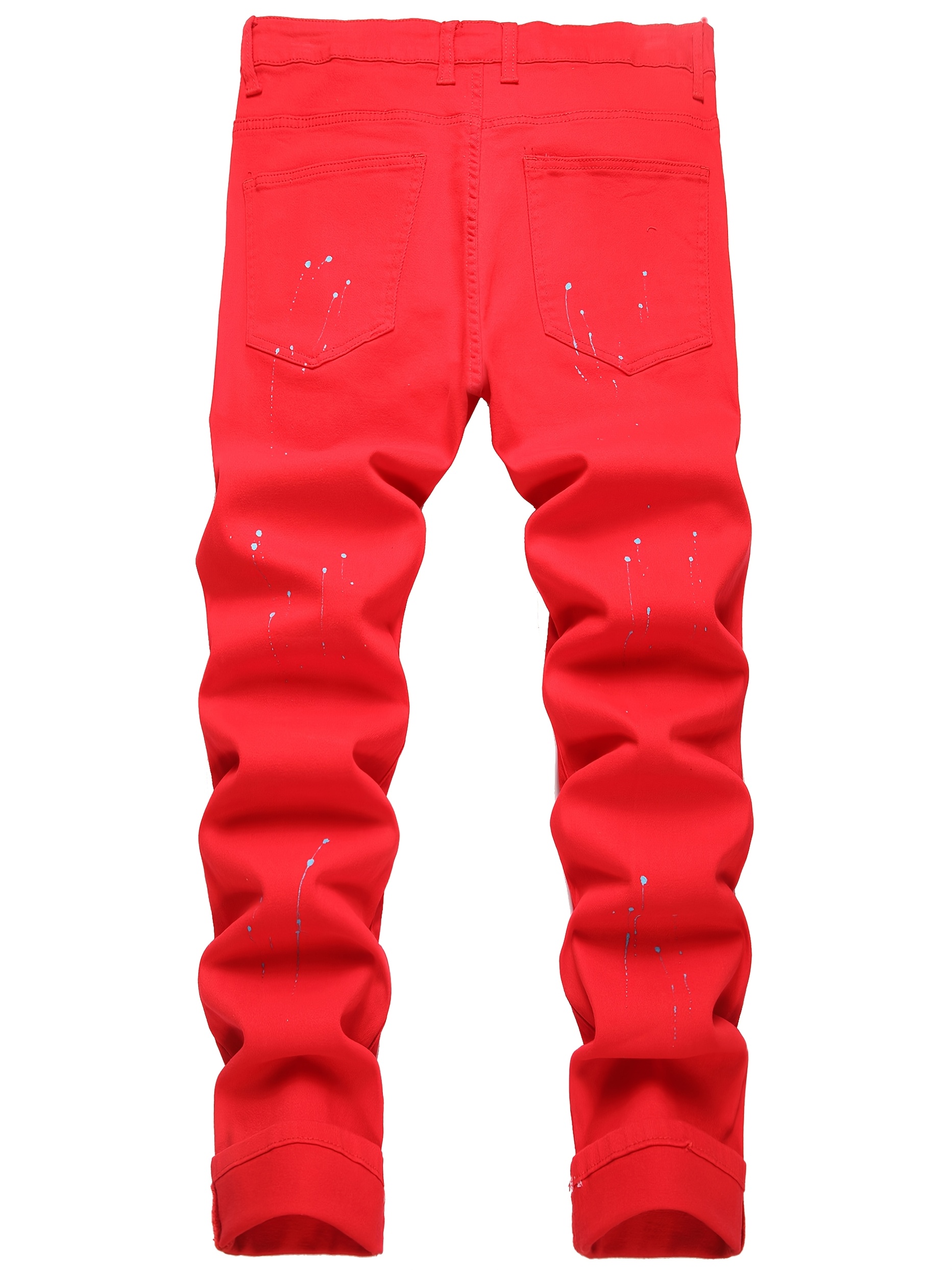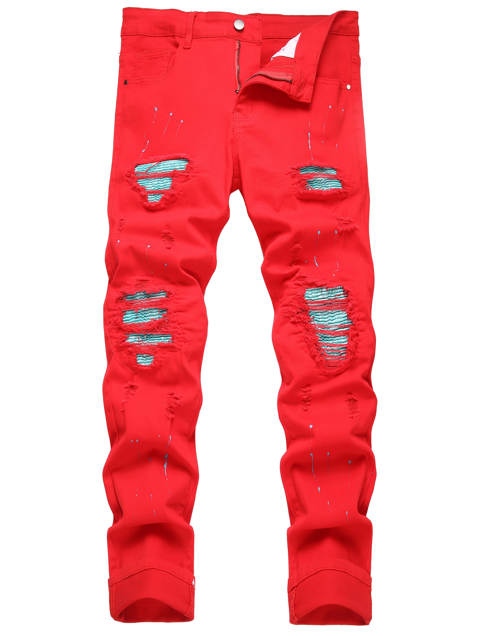 Men’S Sunny Red Slim Fit Jeans Green Embossed Wave Lining Men’S Ripped Skinny Jeans Fashionu002FBusiness Negotiationu002FHoliday Partyu002FOutdoor Travel Straight Comfortable Waisted Pants Easy To Match With Tops