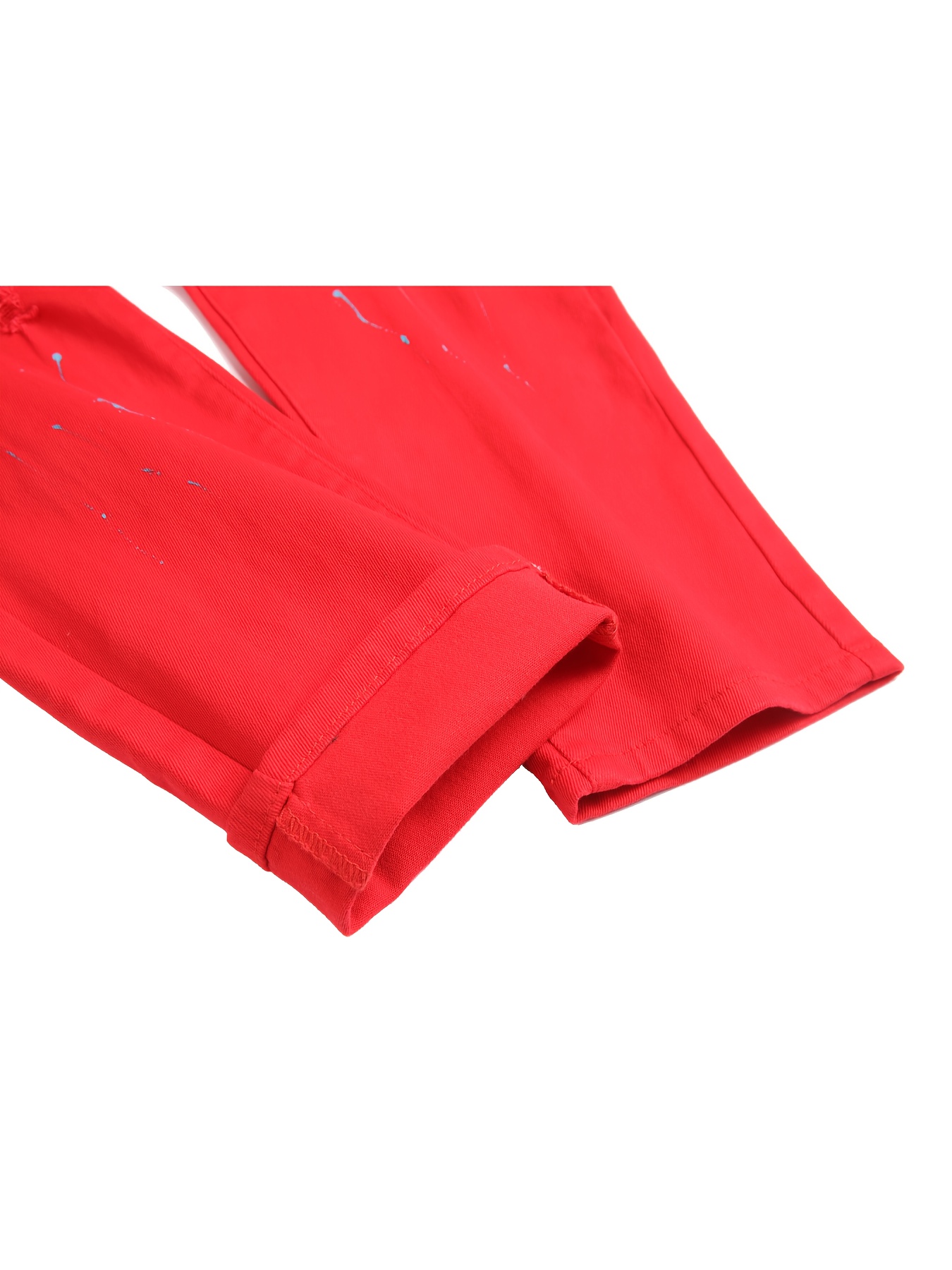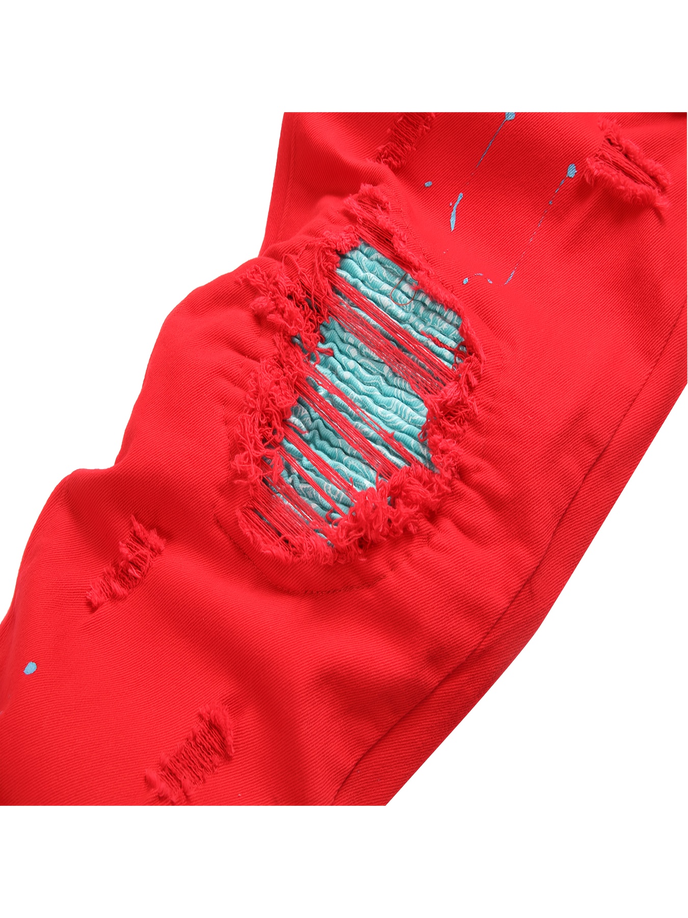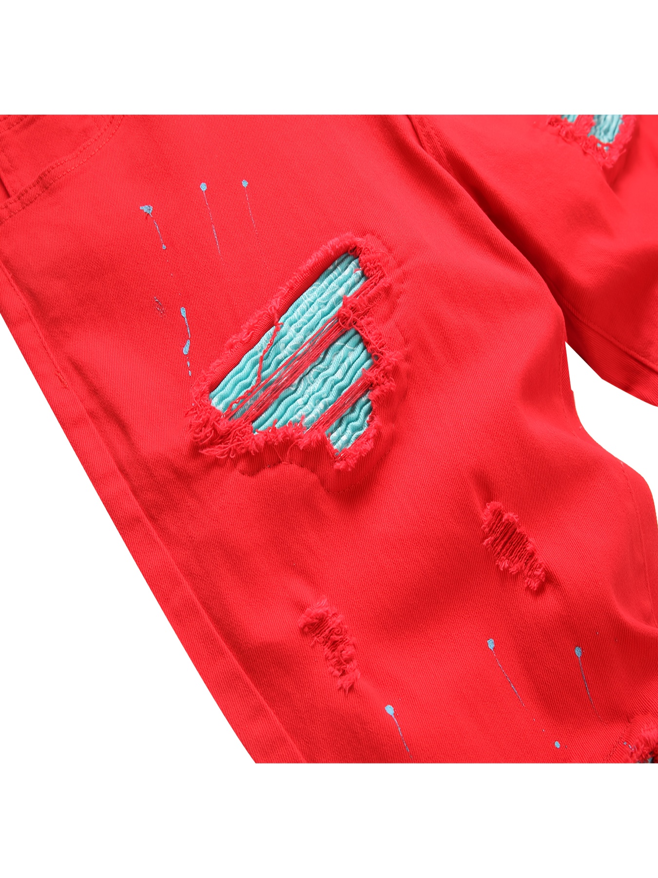 Men’S Sunny Red Slim Fit Jeans Green Embossed Wave Lining Men’S Ripped Skinny Jeans Fashionu002FBusiness Negotiationu002FHoliday Partyu002FOutdoor Travel Straight Comfortable Waisted Pants Easy To Match With Tops