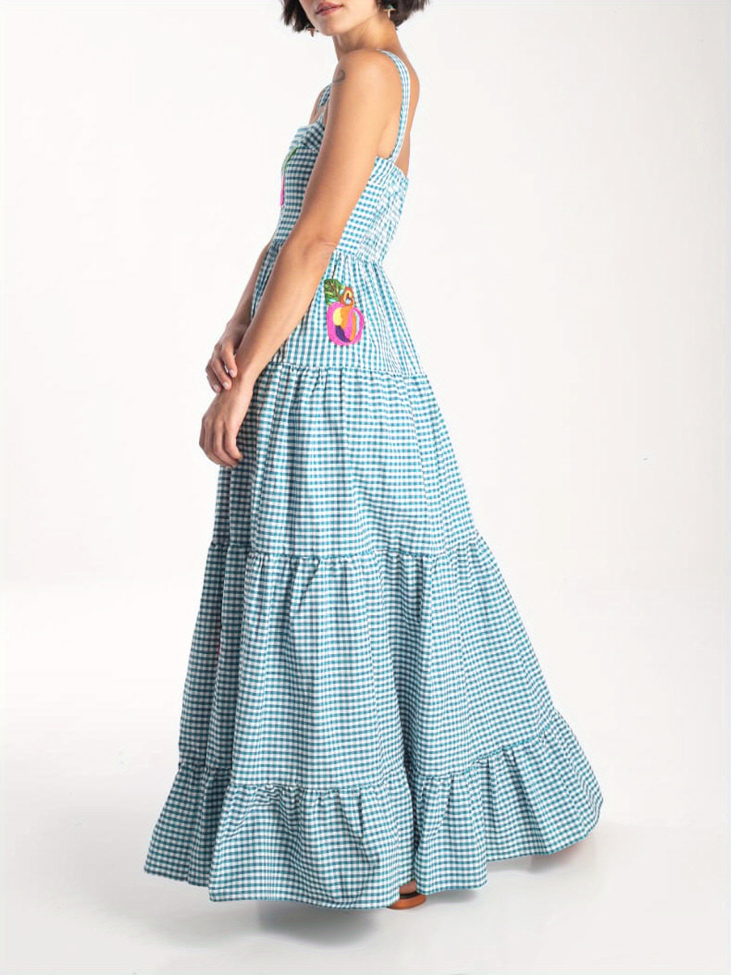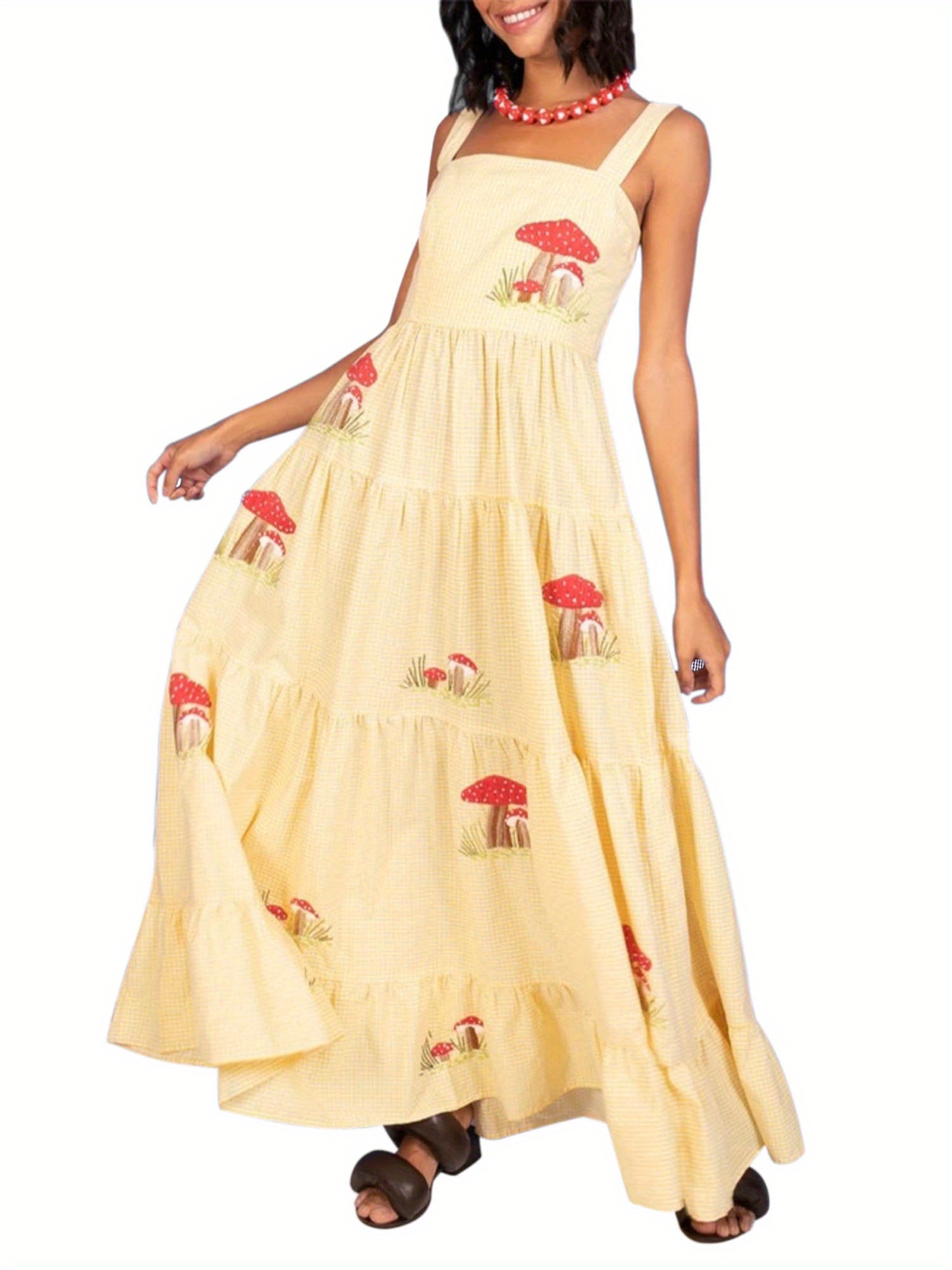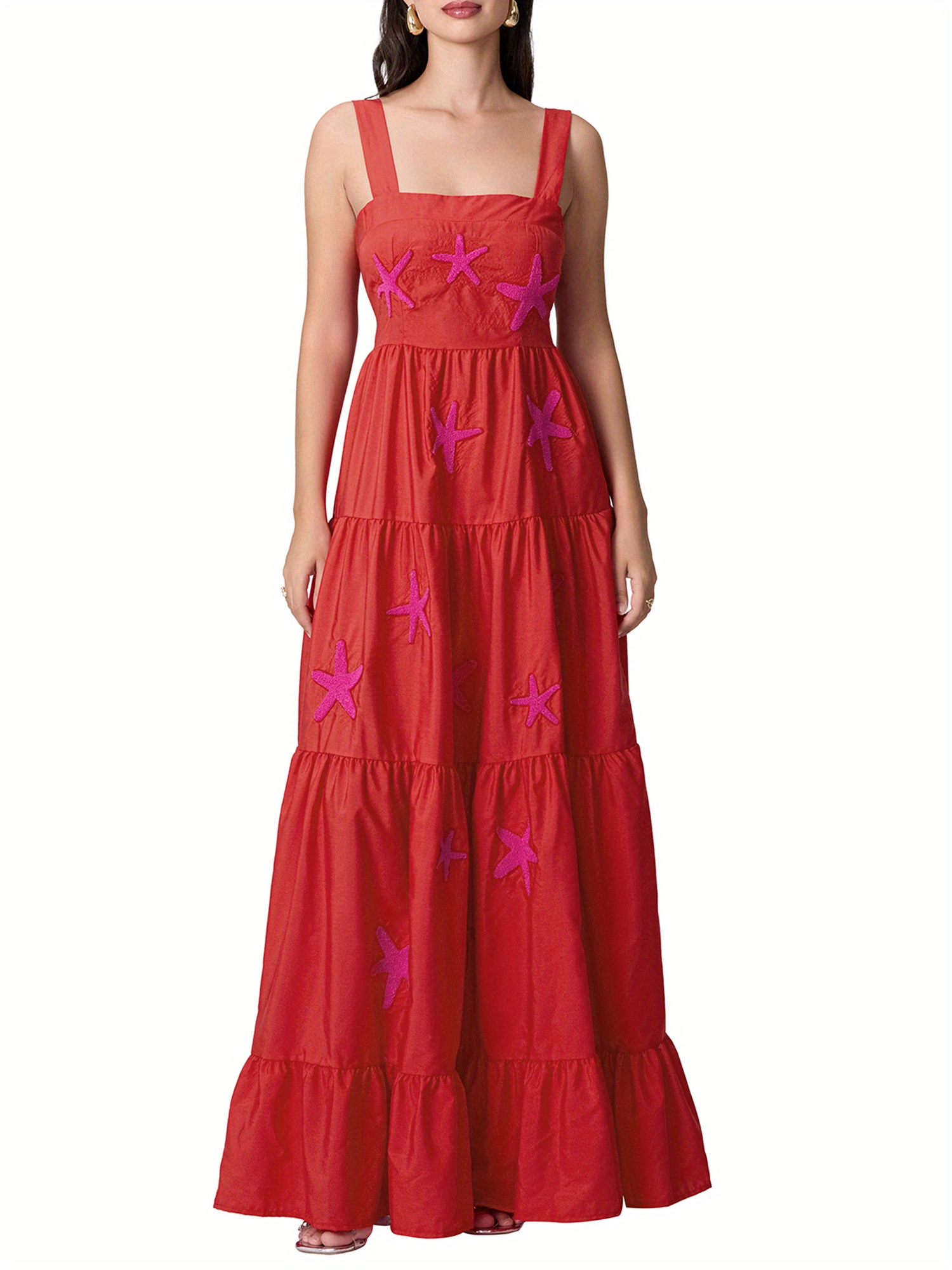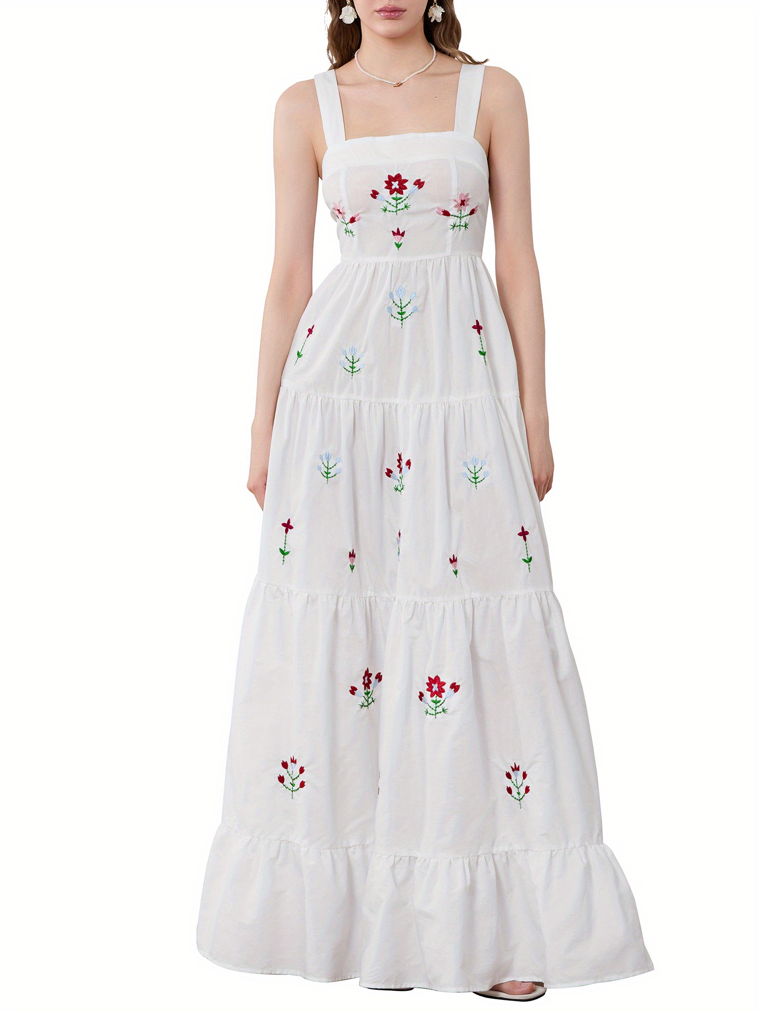 Sleeveless Square Neck Embroidered Tiered Midi Slip Dress for Women