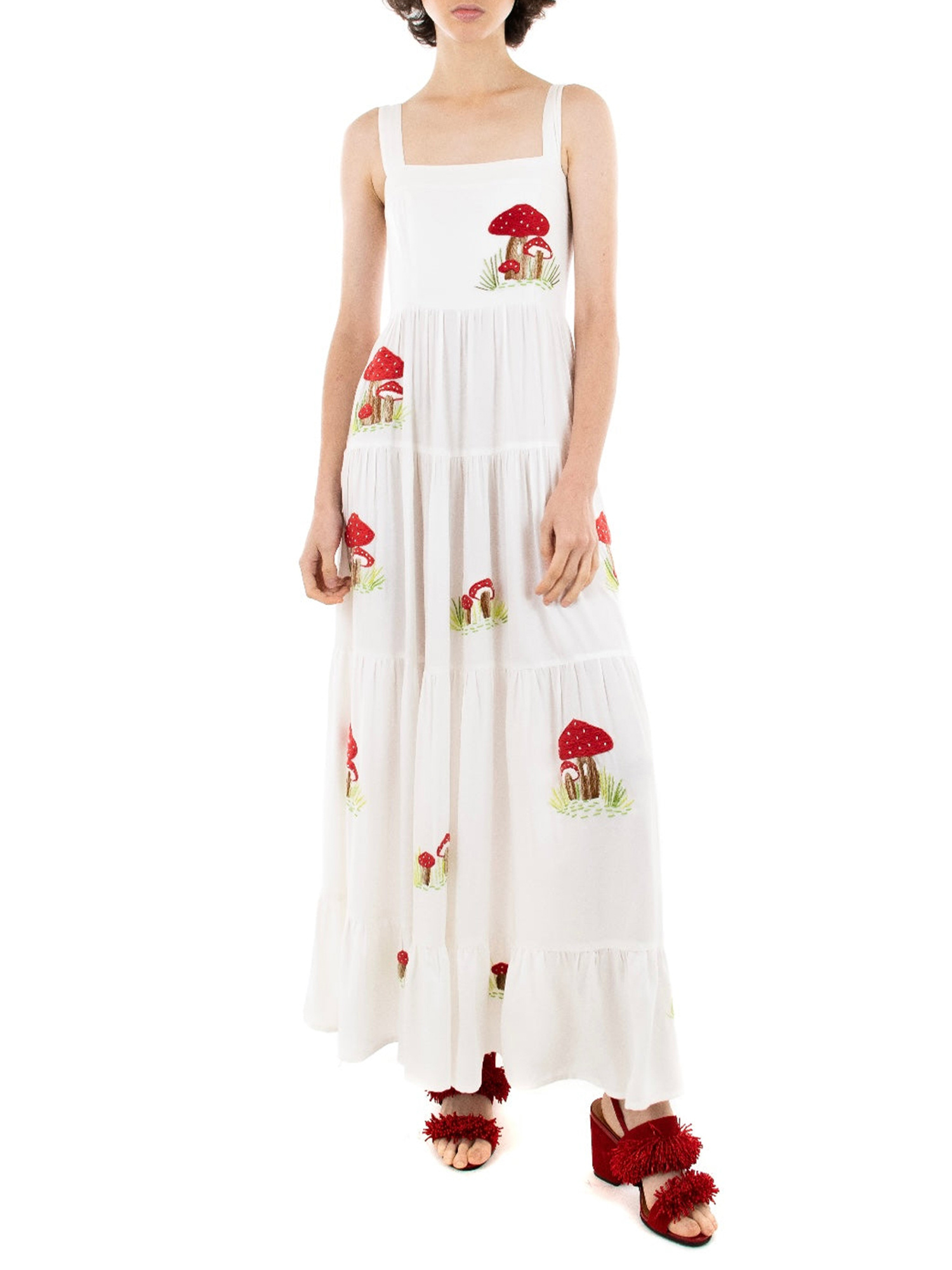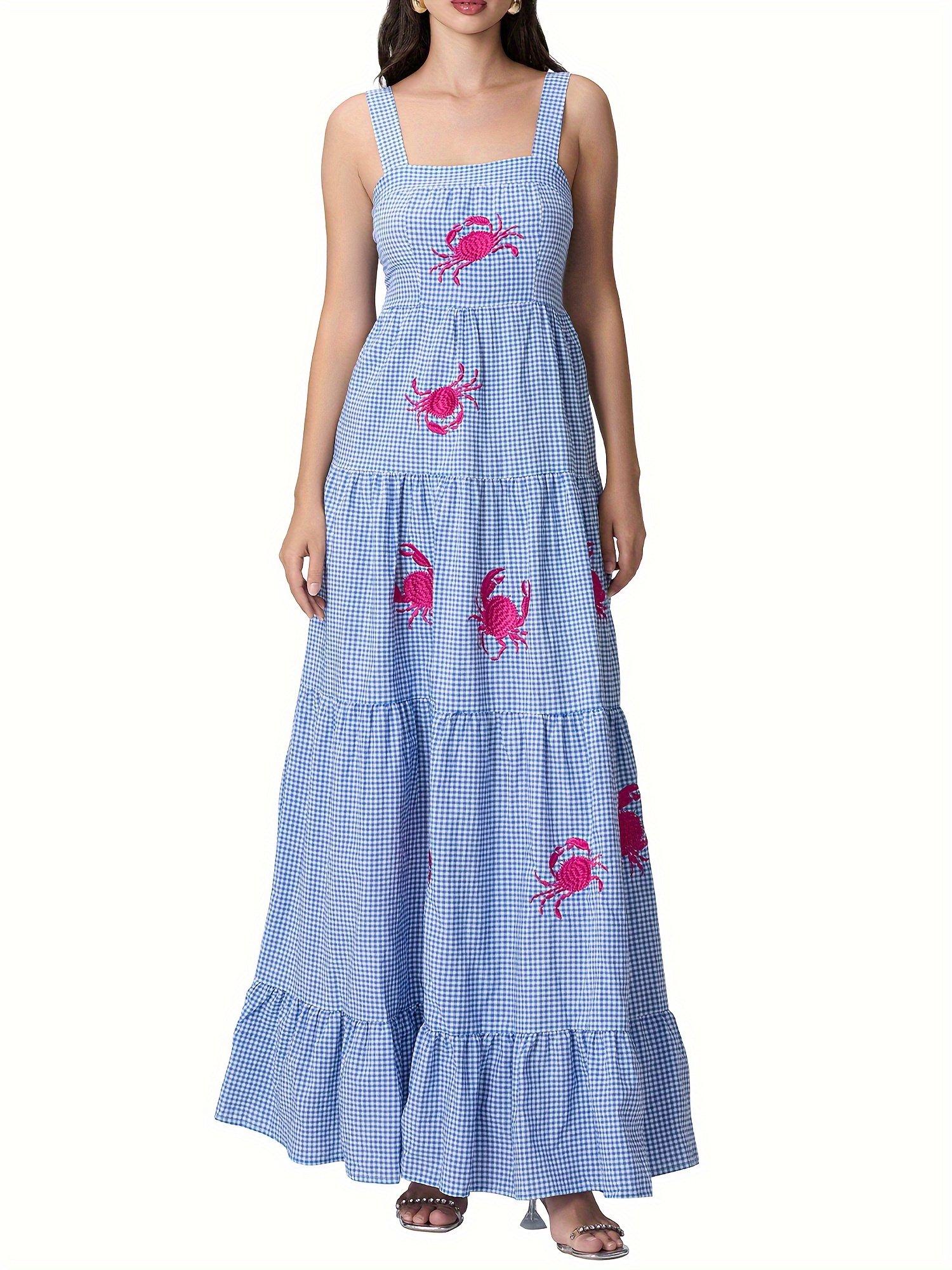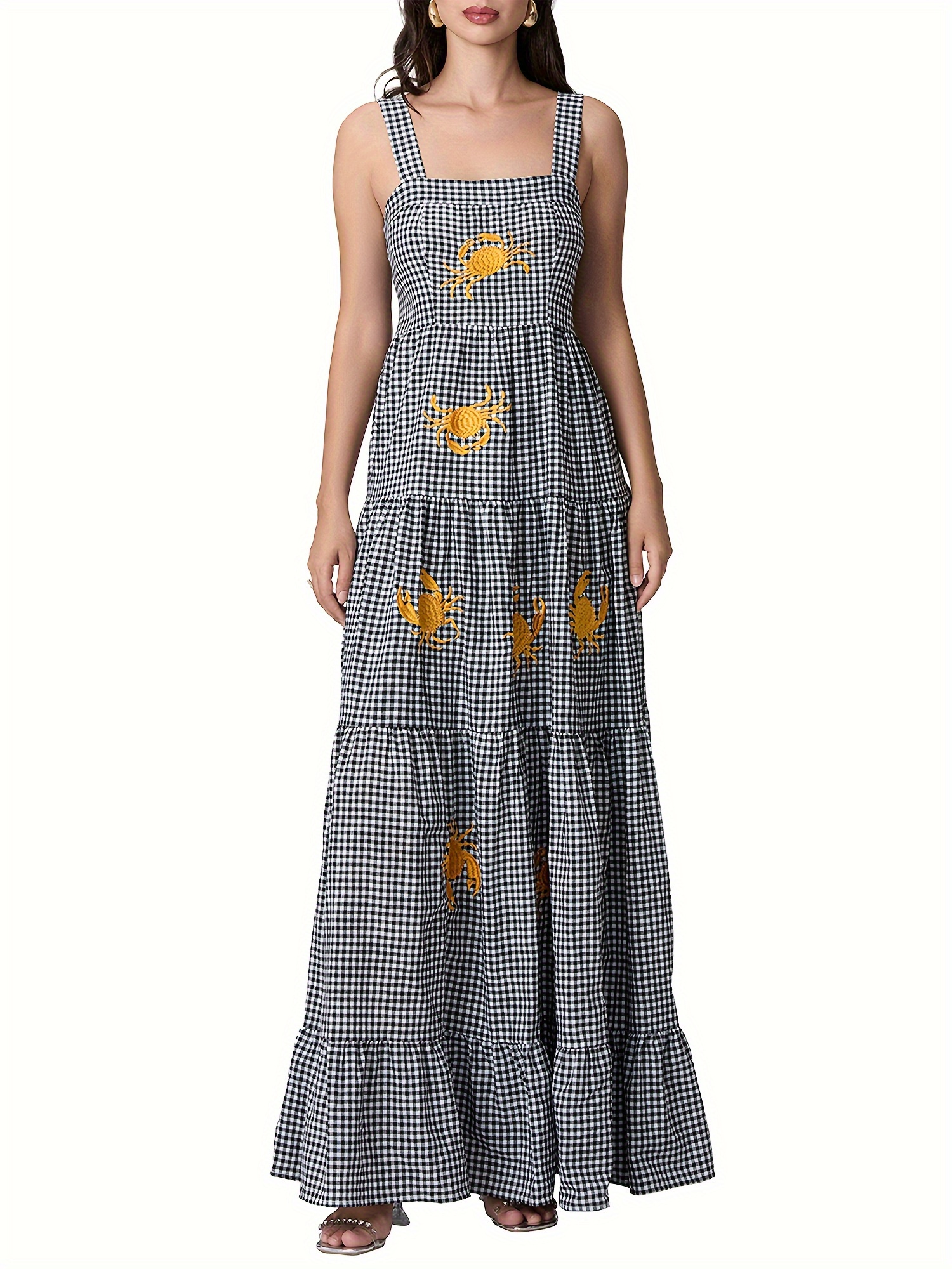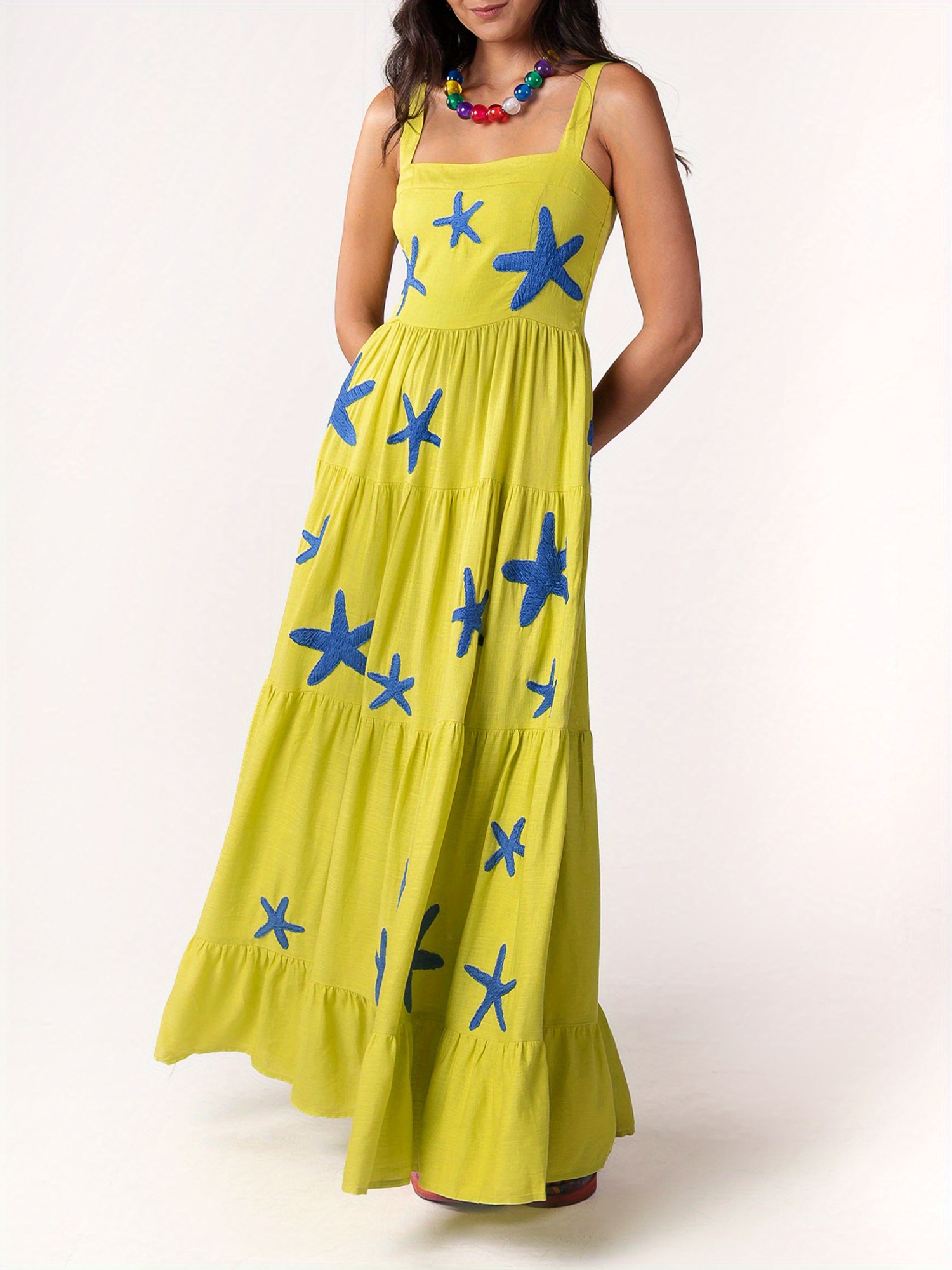Sleeveless Square Neck Embroidered Tiered Midi Slip Dress for Women