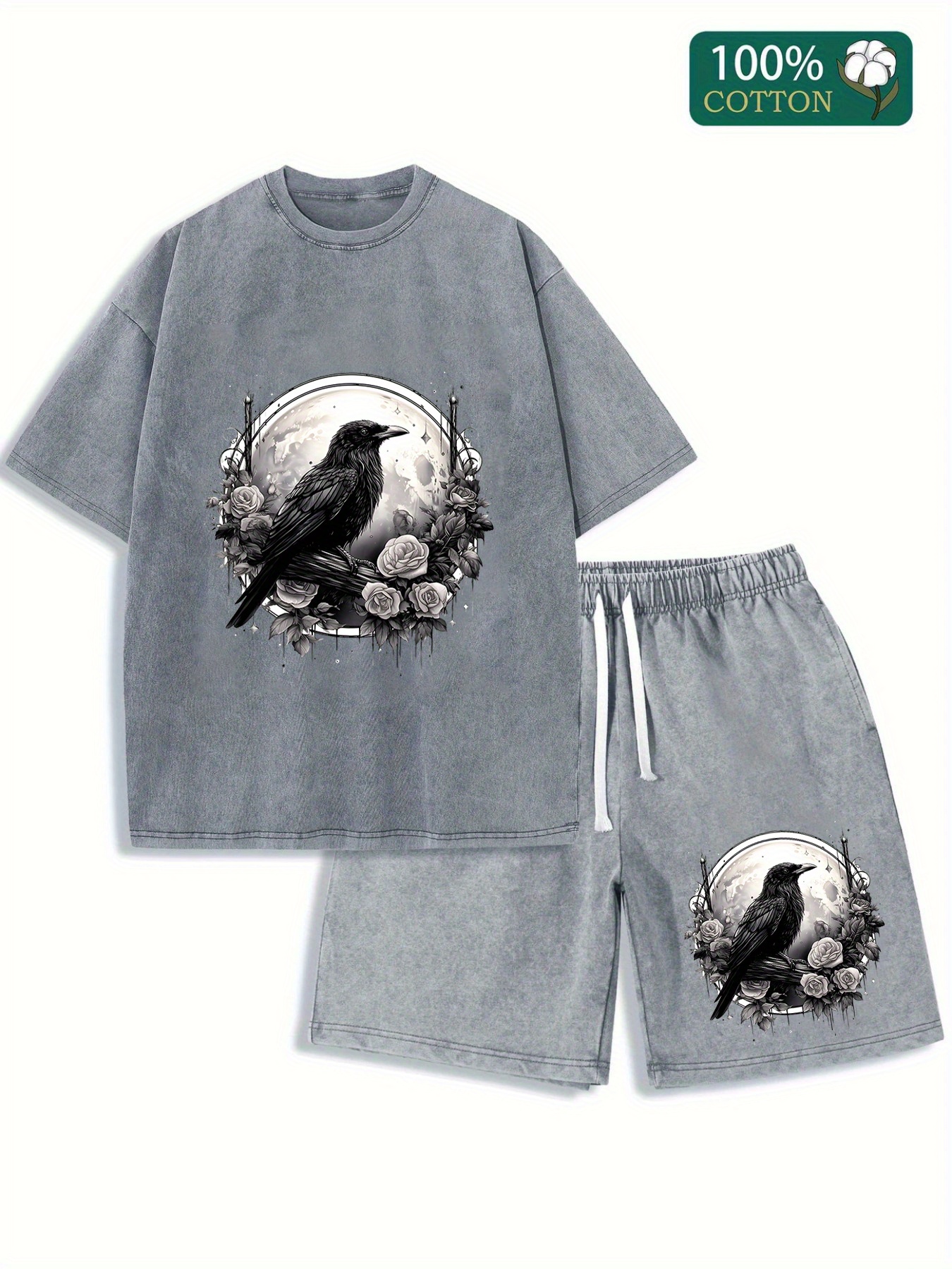 Be the first to review “Washed vintage batik cotton, paired with 230GT shirt and 290G shorts, recent bestseller, washed set with flowers and crows printed on it, outdoor adventure travel on the street” Cancel reply