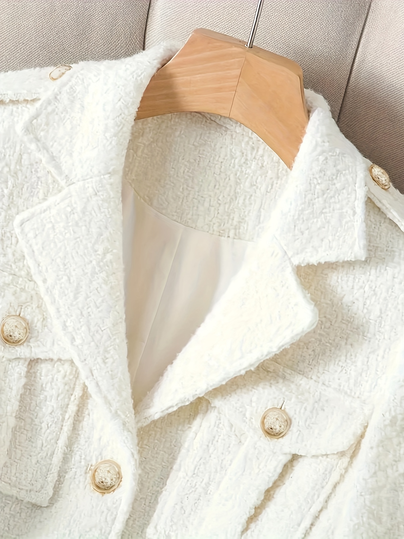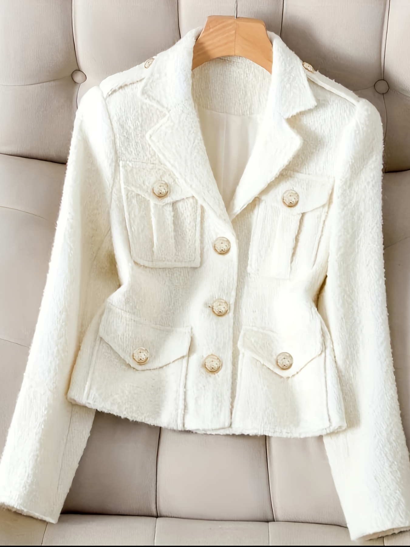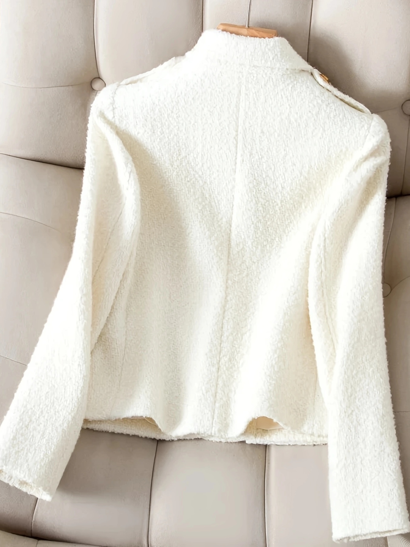 Be the first to review “Women Ivory Tweed Blazer with Golden Buttons Tailored Office to Casual Jacket Fall Transition Wardrobe Staple Elegant Structured Outerwear”
