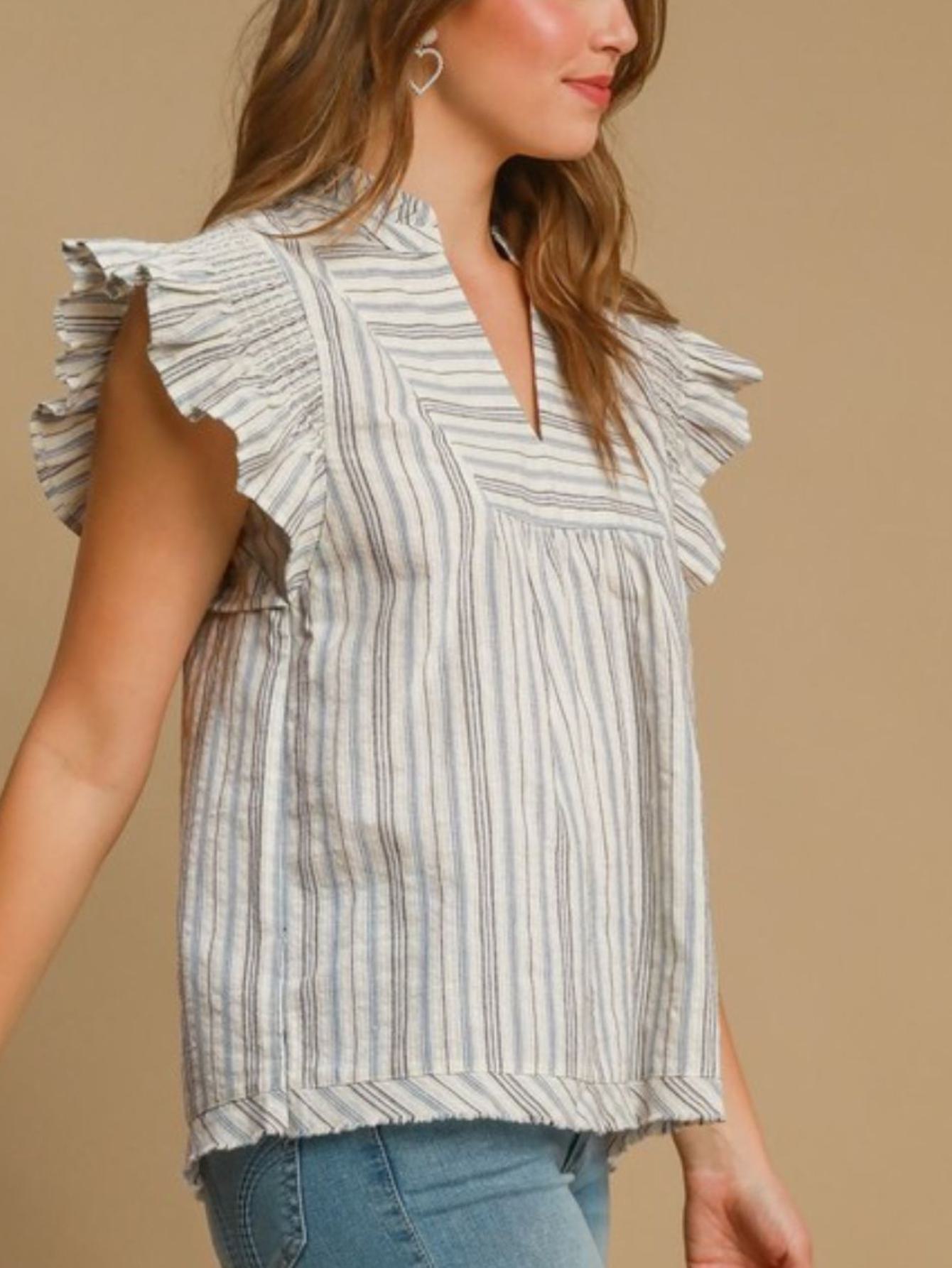 This charming babydoll top features a stylish striped pattern for a playful