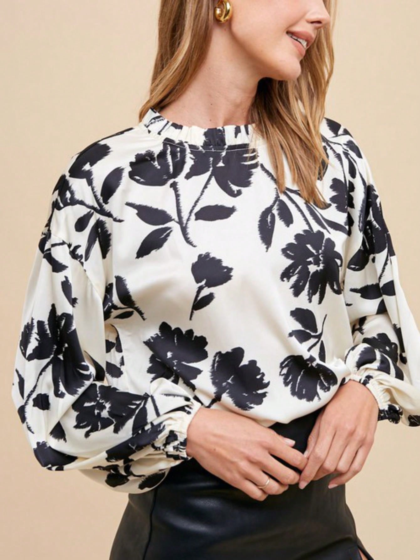 The Frill Printed Balloon Sleeve Blouse is a chic and feminine top that exudes style and sophistication. The printed fabric adds visual interest and a pop of color to the garment. making it a statement piece. The balloon sleeves are fashion and add a dramatic flair to the blouse. elevating the overall design. Perfect for dressing up a pair of jeans or pairing with a skirt for a more polished look. this blouse is a versatile and fashion-forward choice for any occasion.