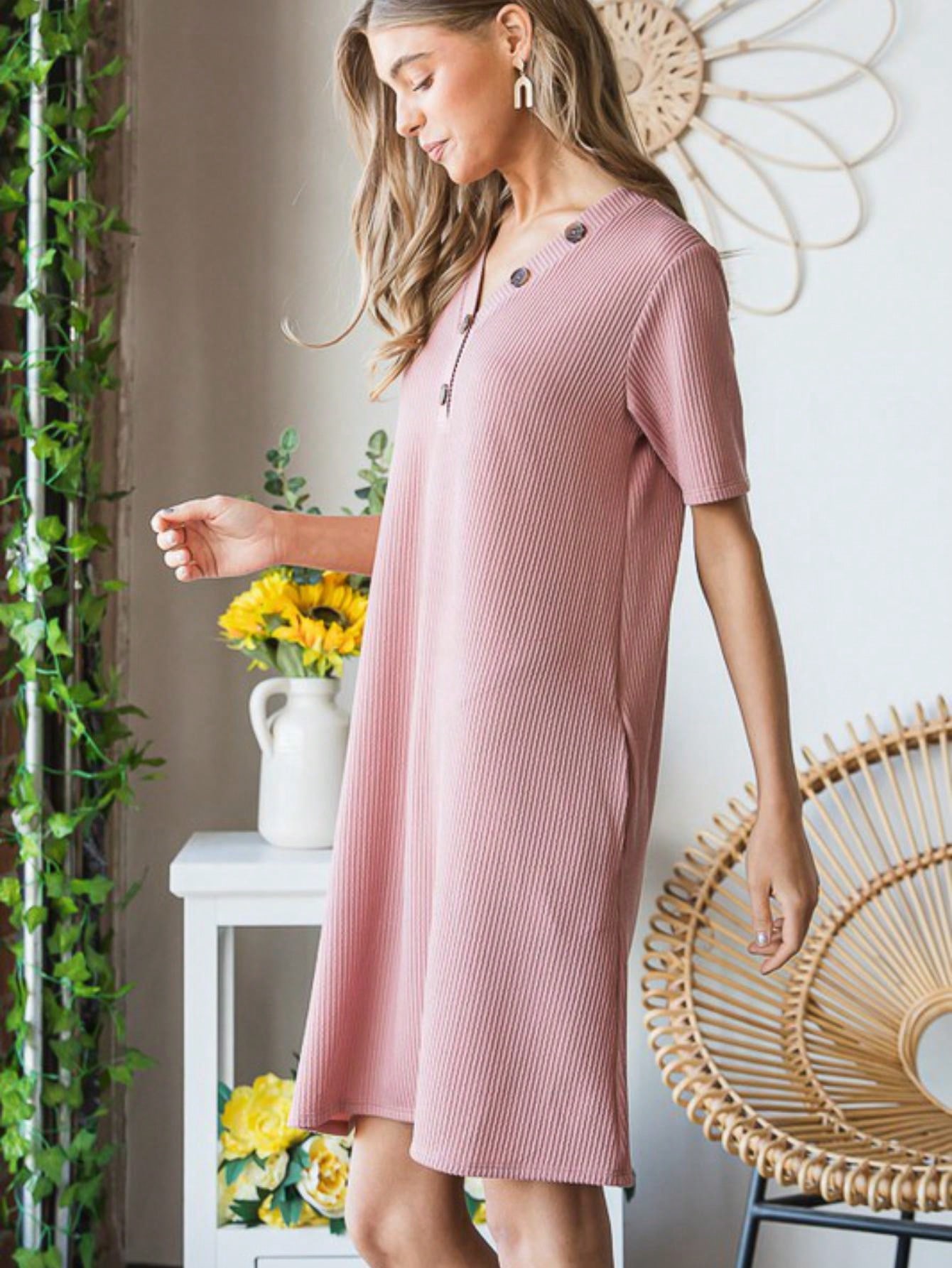 The Solid Ribbed Mini Dress with Button detailing is a chic and versatile option for any occasion. The ribbed texture adds a touch of sophistication to the dress. while the button accents create a stylish focal point. This mini dress is perfect for both casual outings and dressier events. offering a classic look that can be easily dressed up or down.