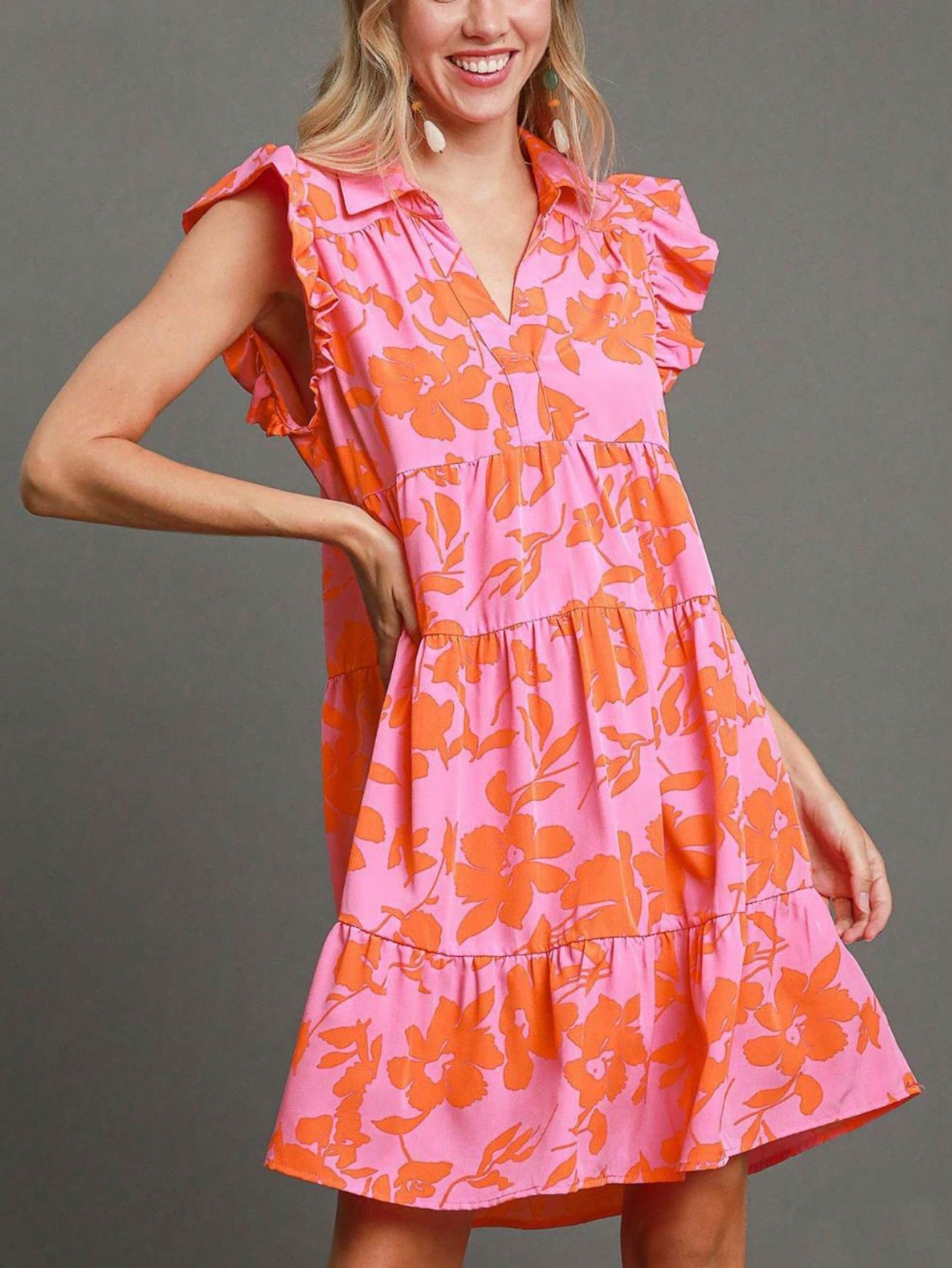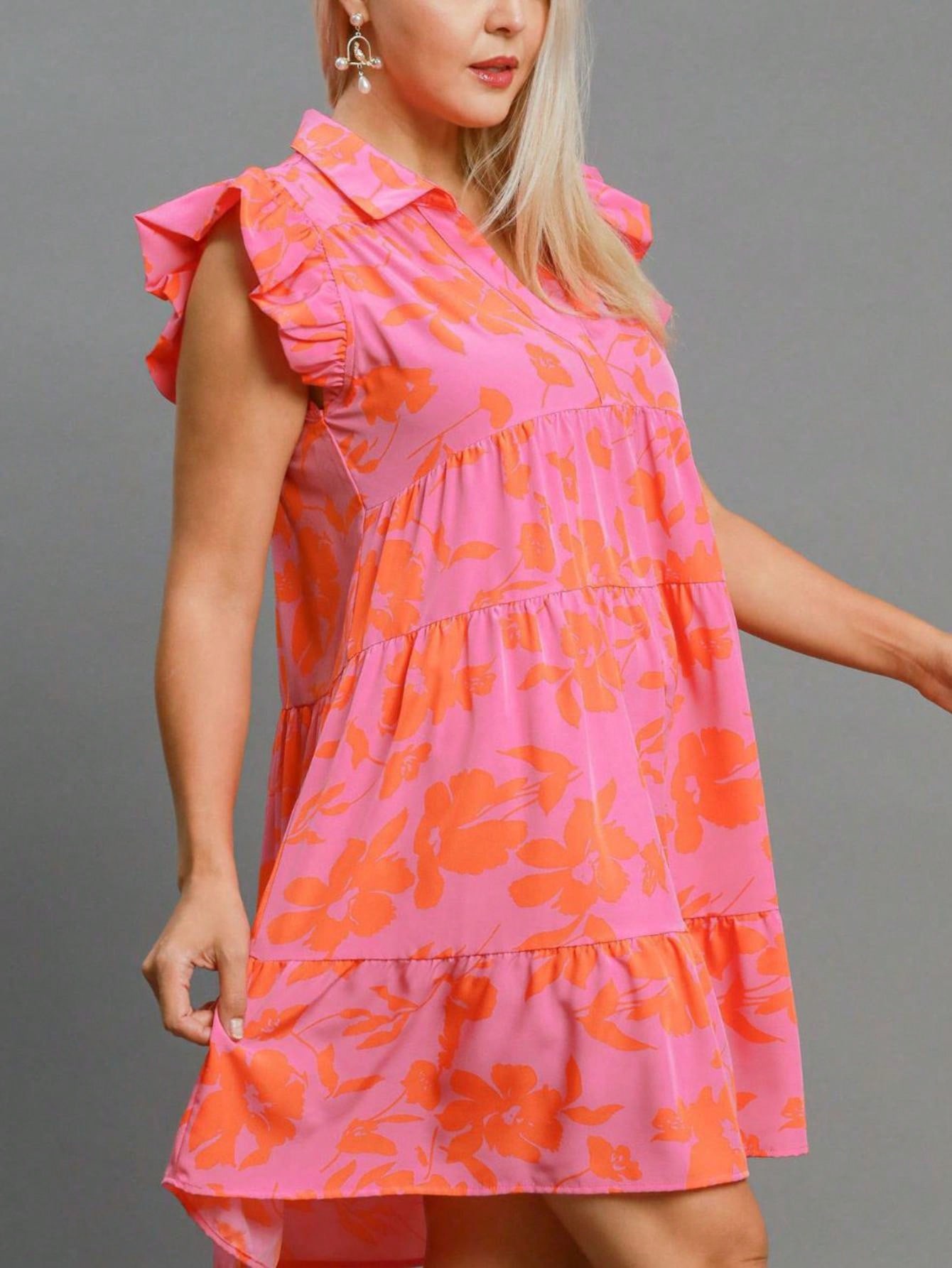 The Floral Print Ruffle Cap Sleeve Tiered Dress is a charming and feminine piece featuring a floral print and ruffle design. The cap sleeves add a touch of sweetness to the dress. while the tiered layers create a flowy and elegant silhouette. Perfect for summer days or special occasions. this dress exudes a romantic and delicate vibe. The floral print adds a playful and stylish element. making this dress a versatile and charming option for your wardrobe.
