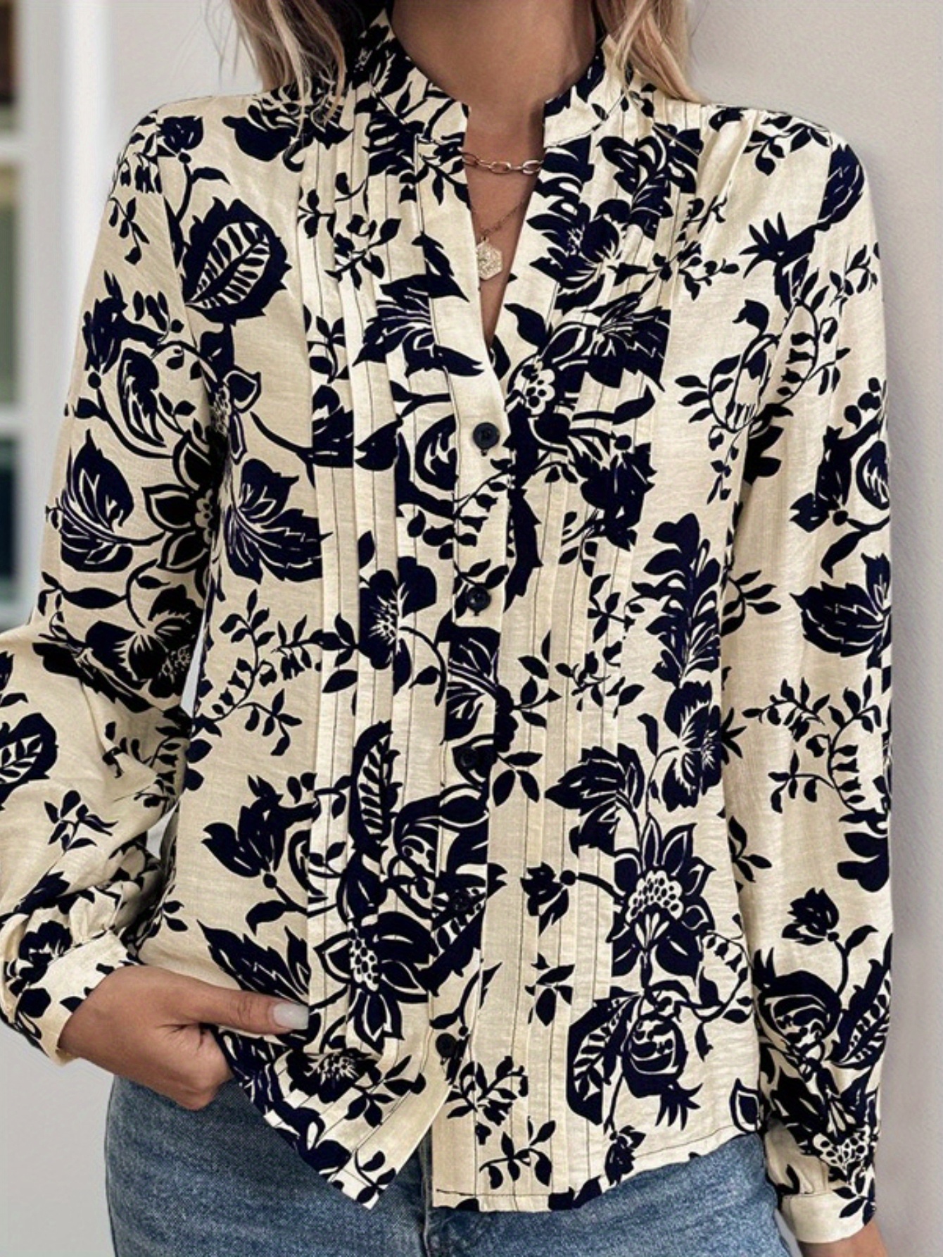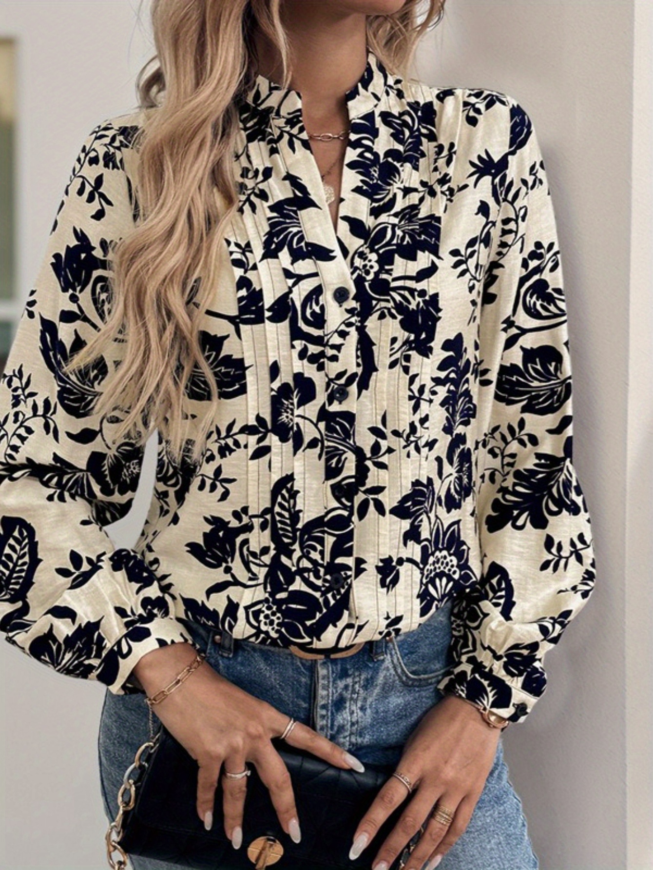 Women’S Elegant Floral Print Blouse with V-Neck and Ruffled Sleeves – Casual Chic Top for All Seasons, Casual Chic Wear | Floral Print Blouse | Ruffled Sleeves, Ladies Blouses