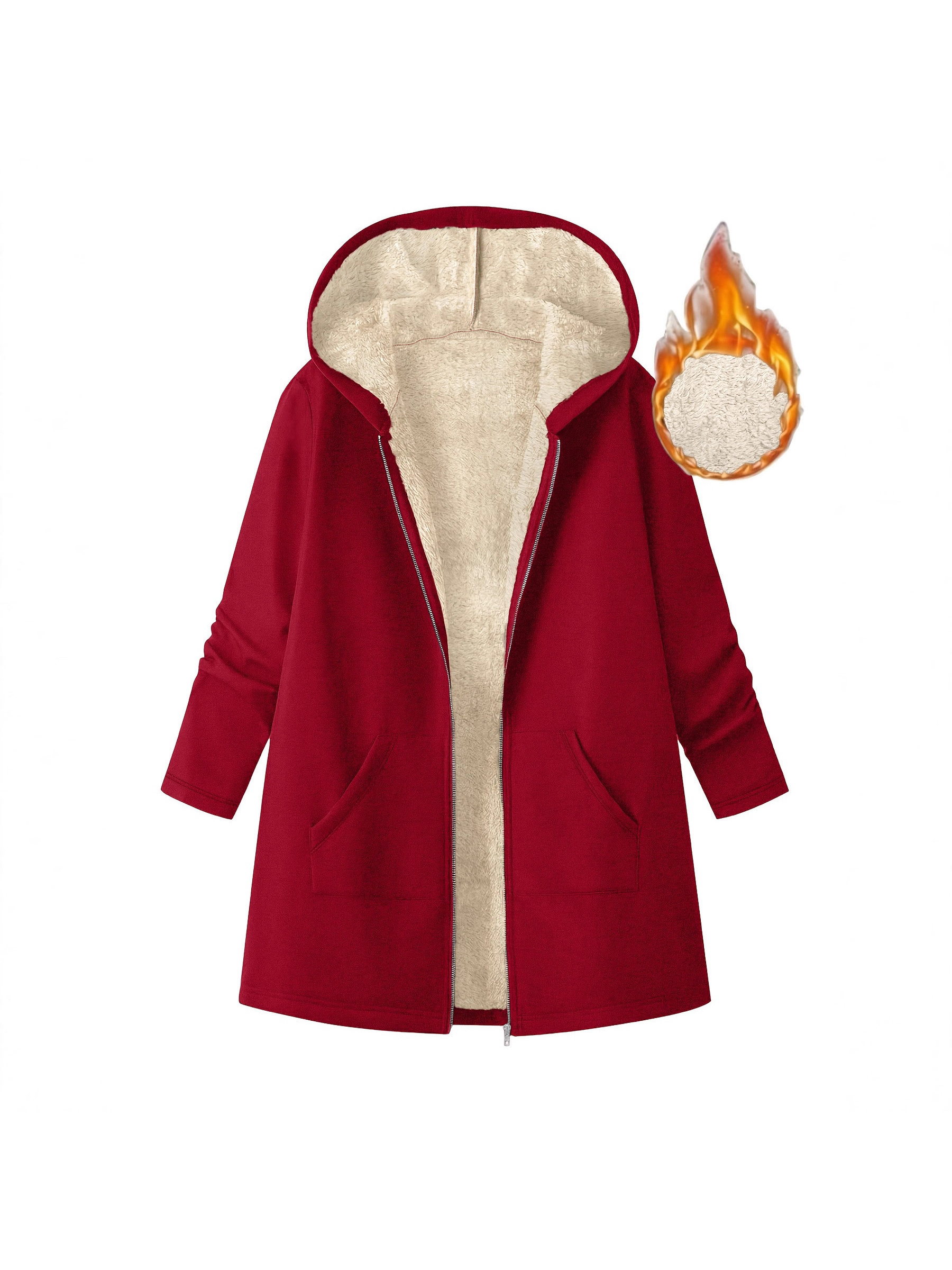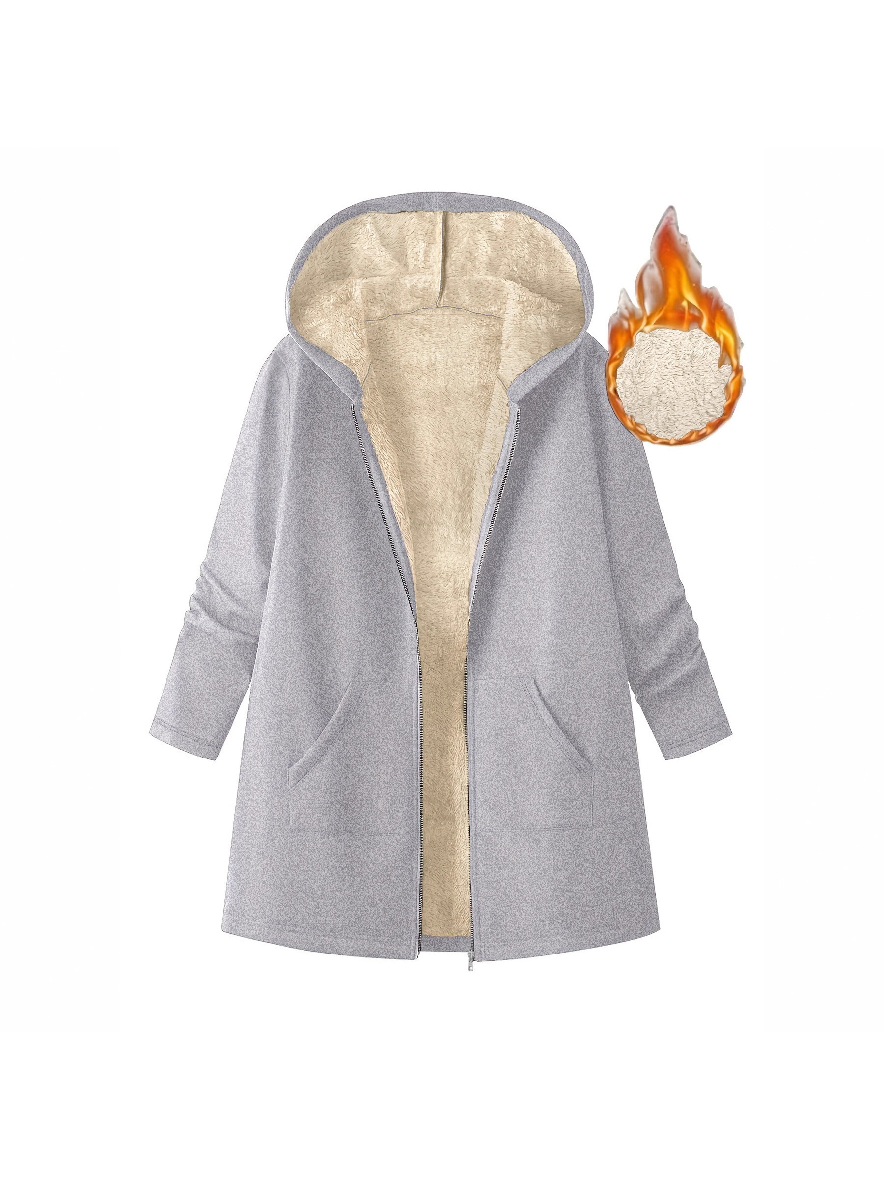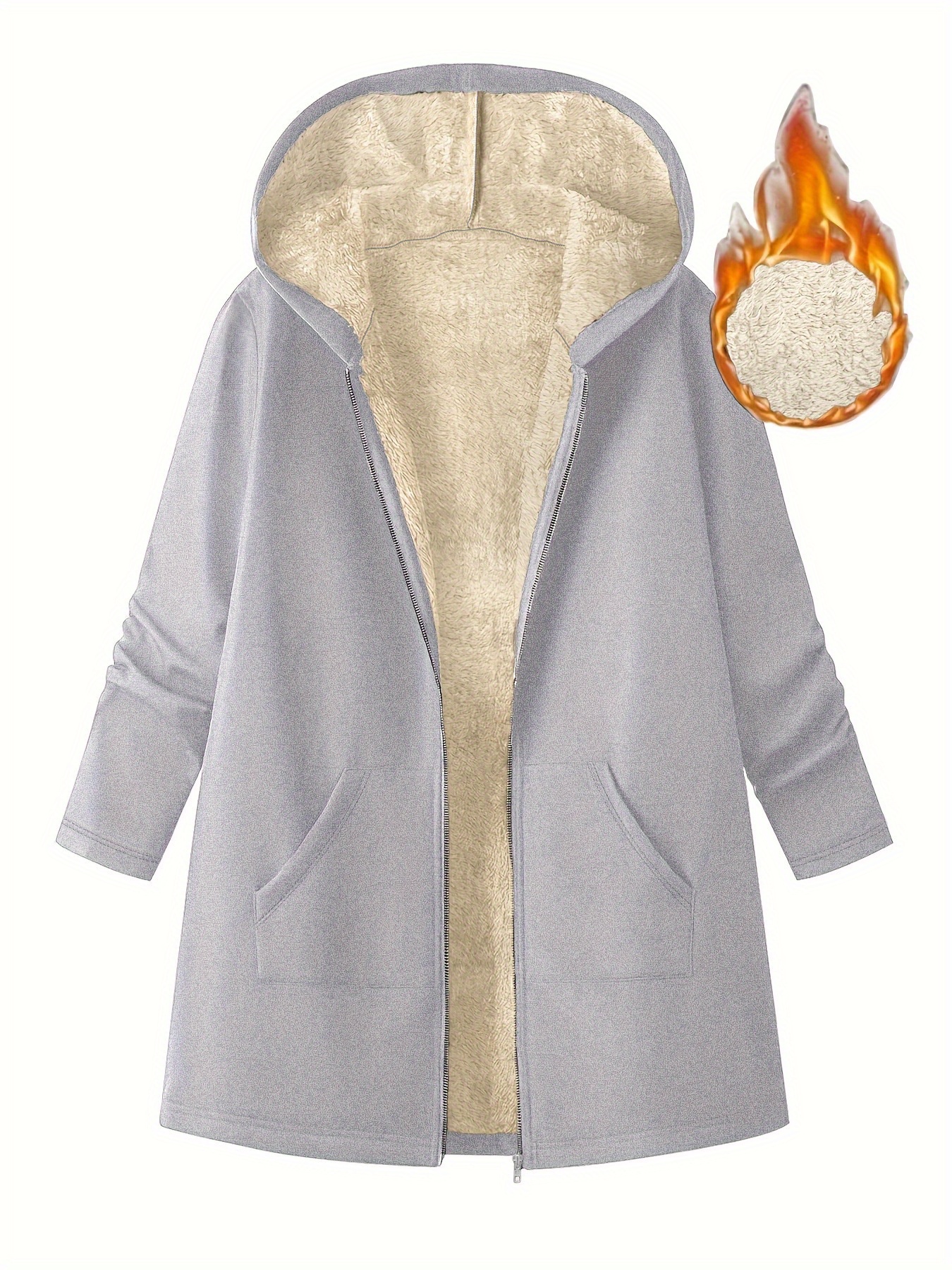 Women’S Mid-Length Hooded Jacket – Cozy Fleece-Lined Casual Outerwear with Zipper Closure, Loose Fit, Solid Color, Long Sleeve, Perfect for Fallu002FWinter, Cozy Fall Jacket | Hooded Sweater | Zippered Jacket