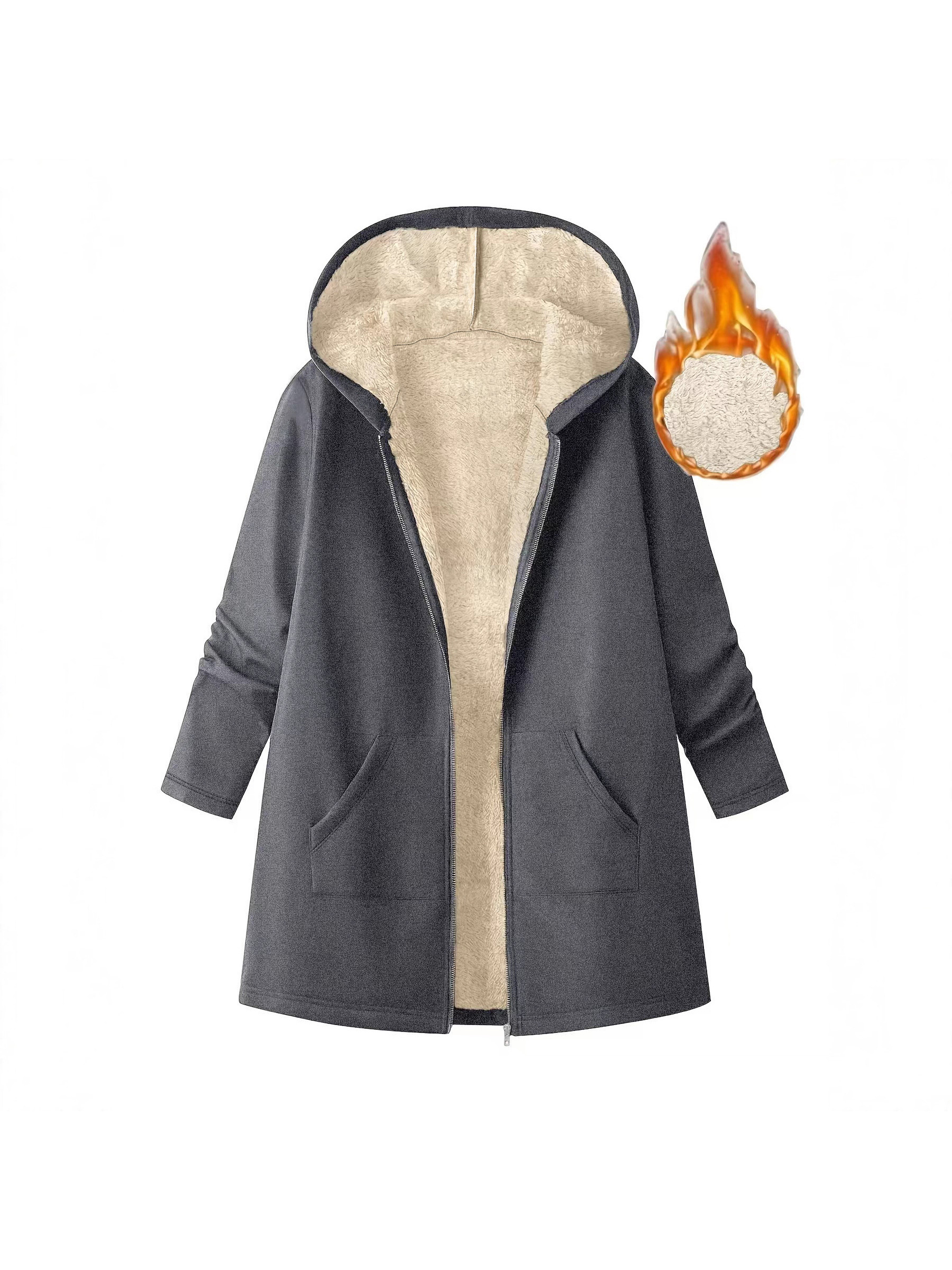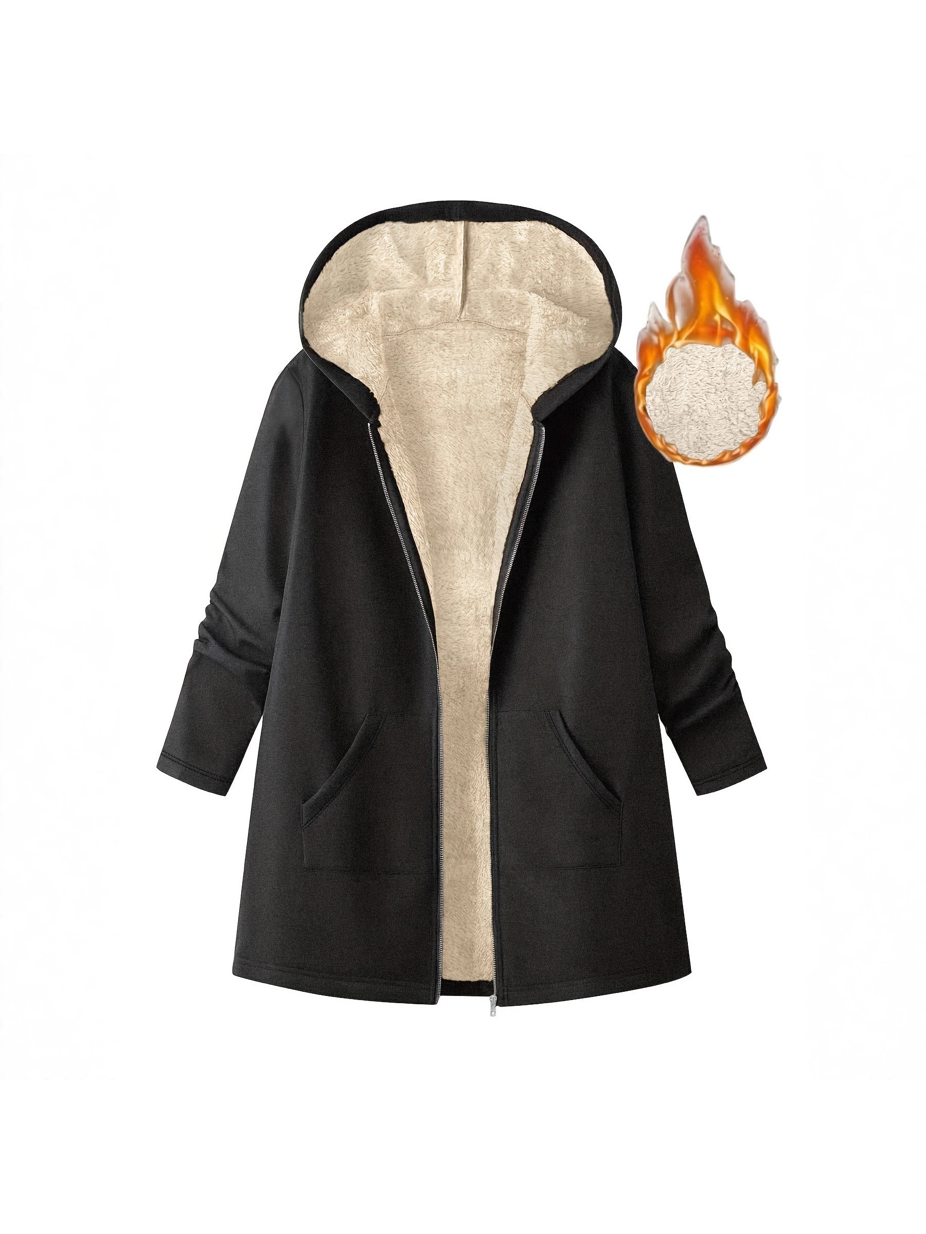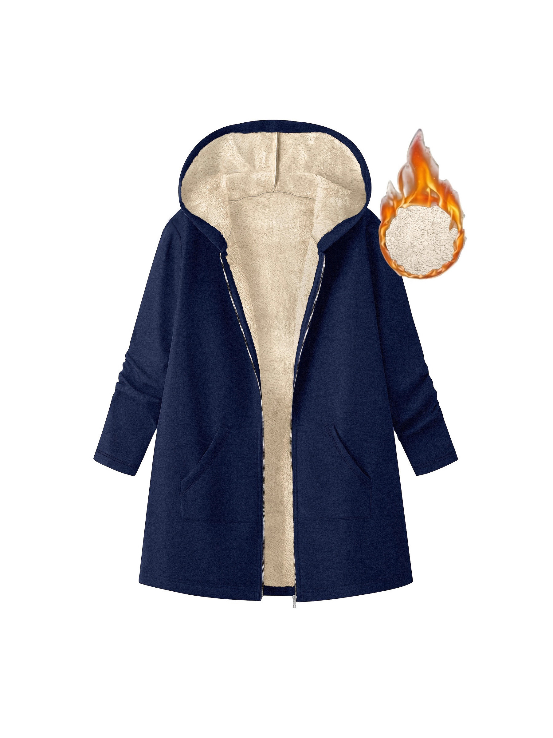 Women’S Mid-Length Hooded Jacket – Cozy Fleece-Lined Casual Outerwear with Zipper Closure, Loose Fit, Solid Color, Long Sleeve, Perfect for Fallu002FWinter, Cozy Fall Jacket | Hooded Sweater | Zippered Jacket