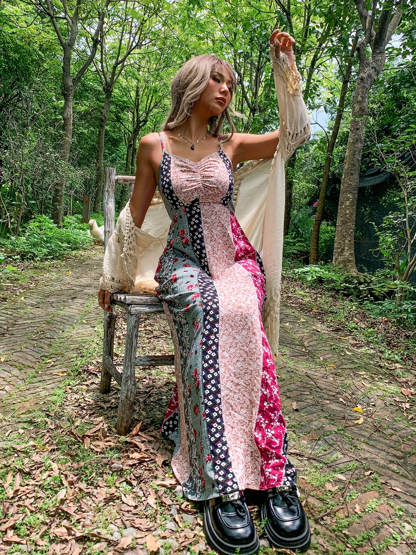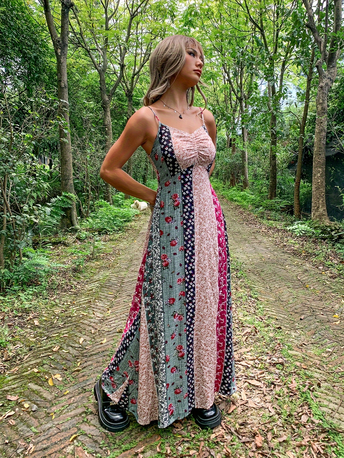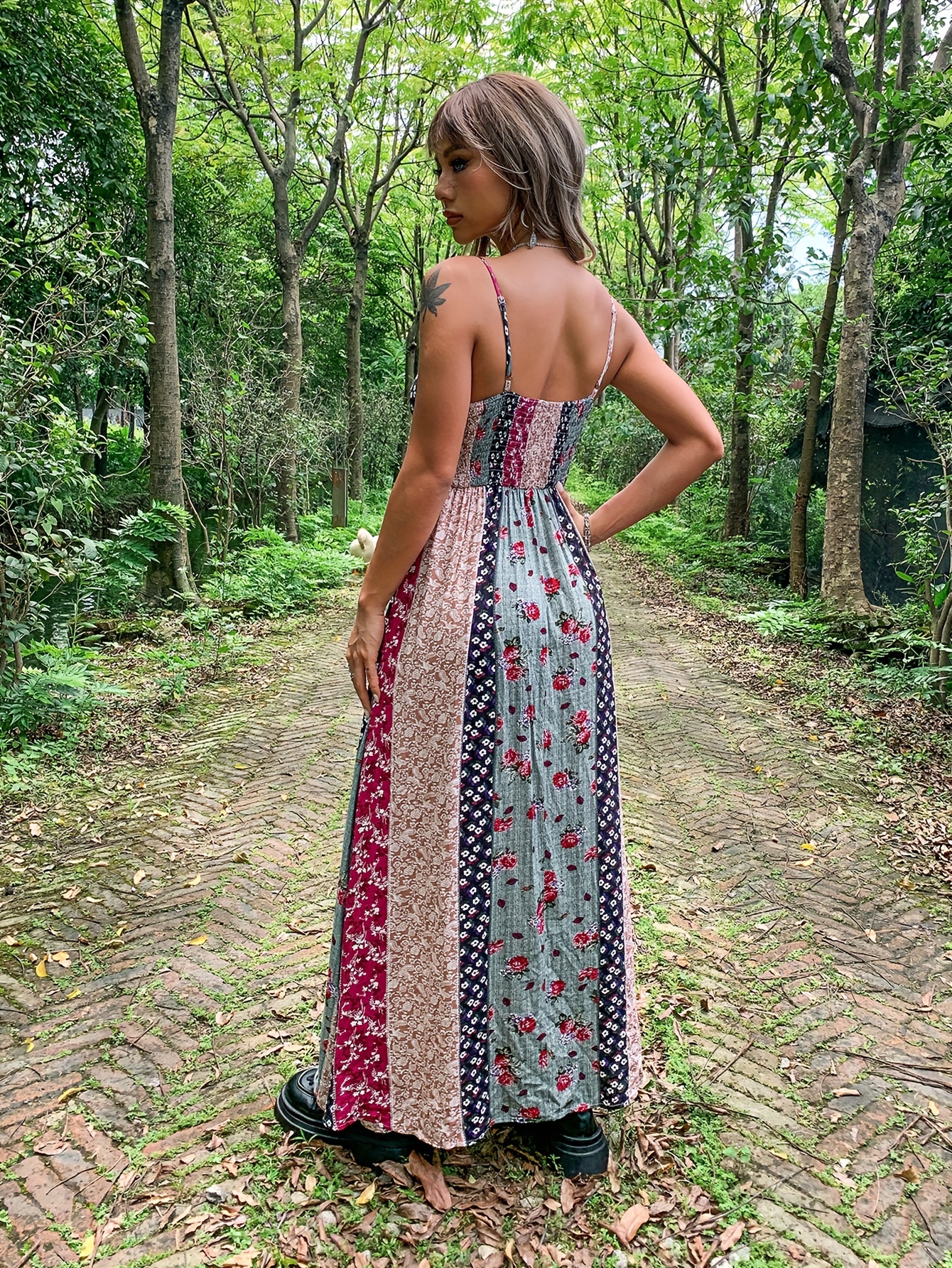 Women’s Printed High Waist Long Dress Spaghetti Strap Suspender Dress Bohemian Style Clothing