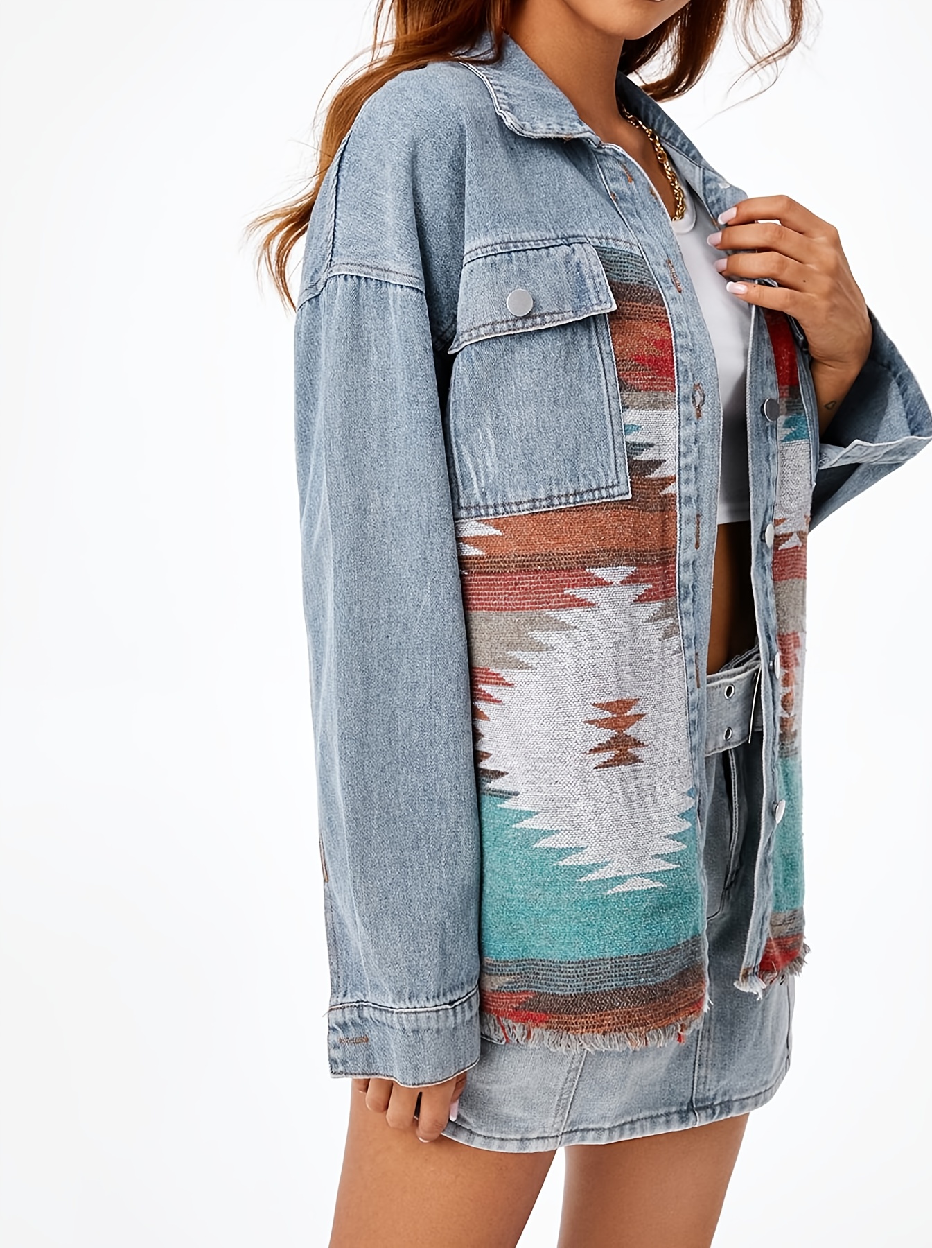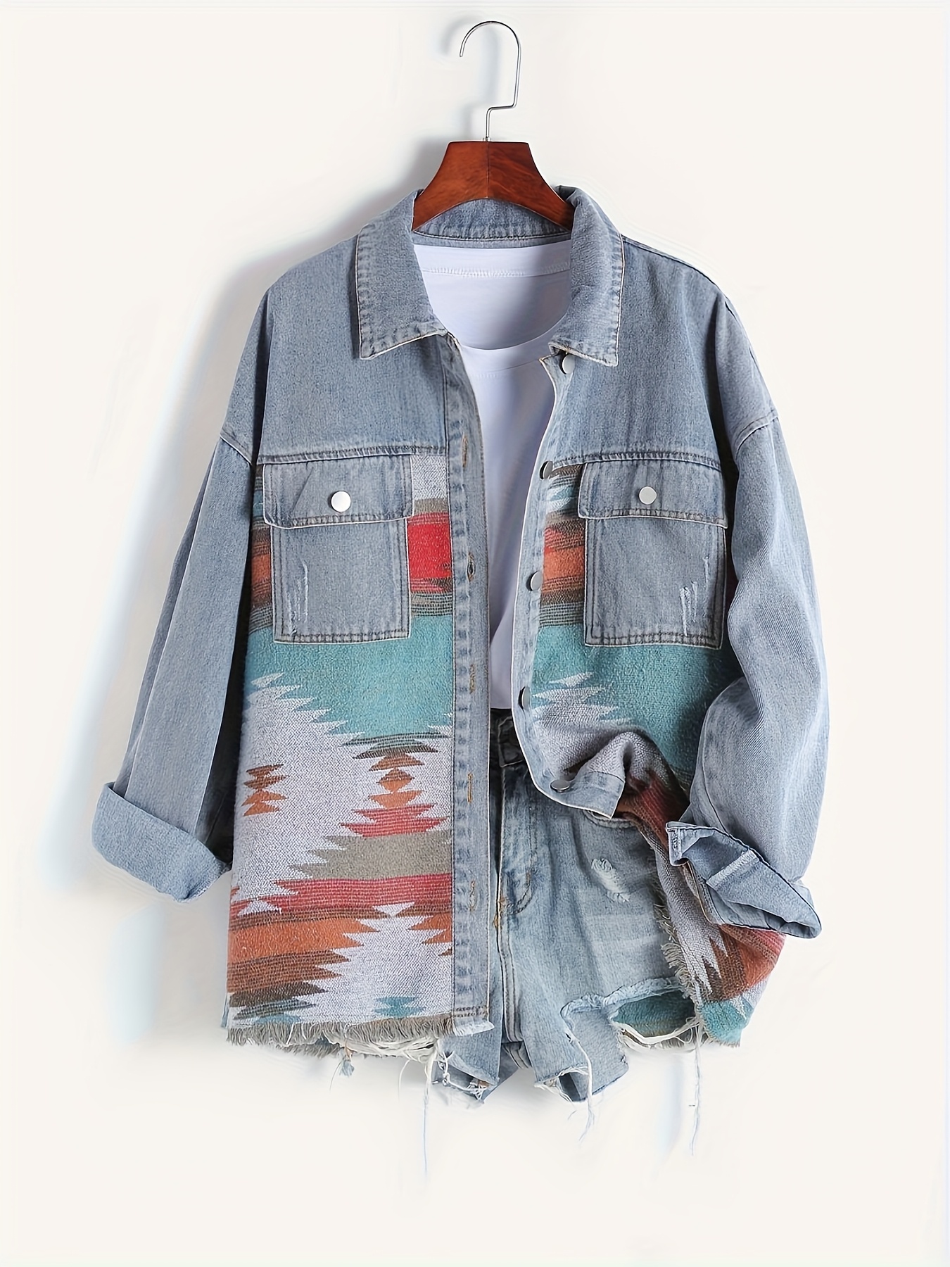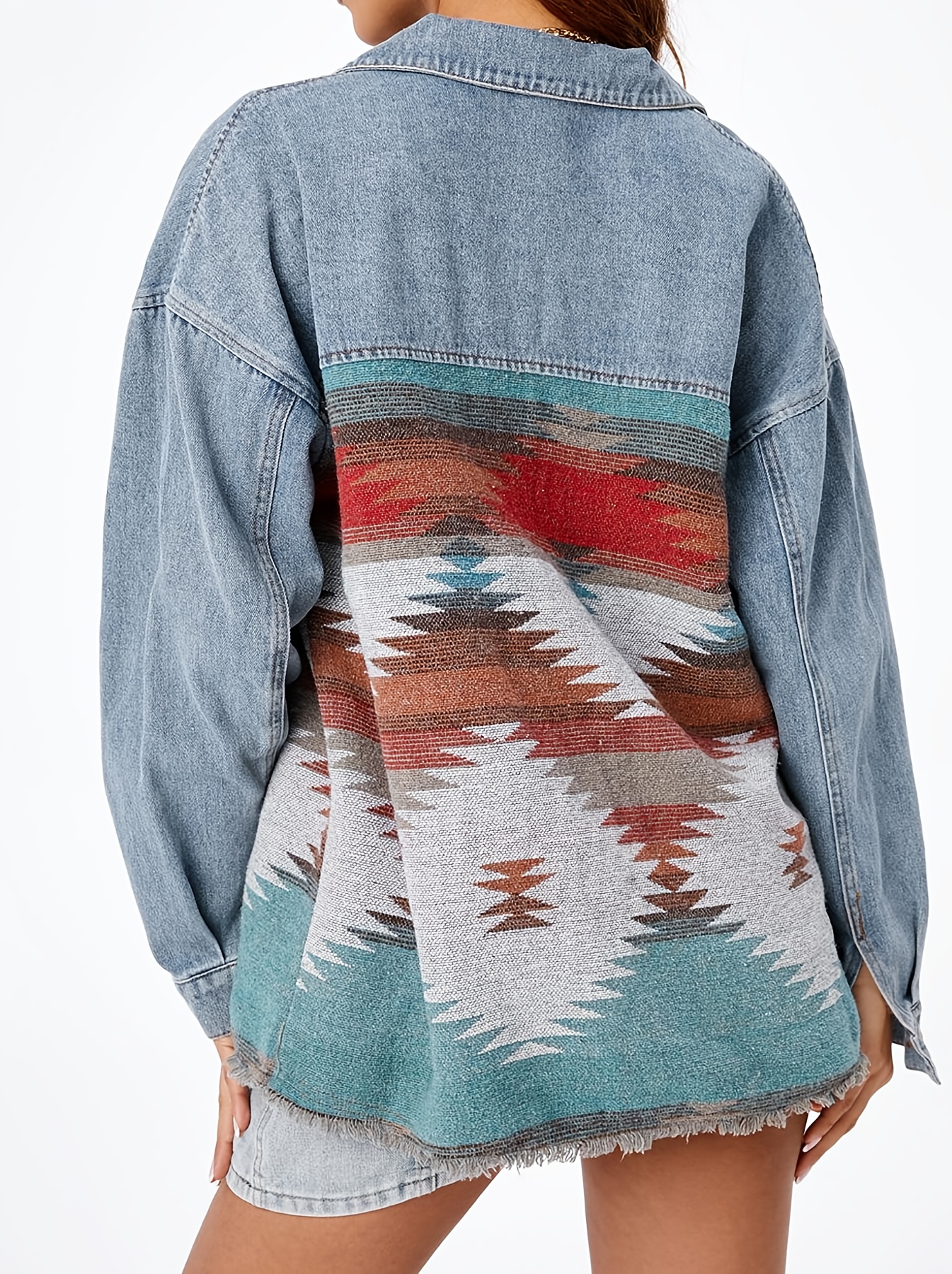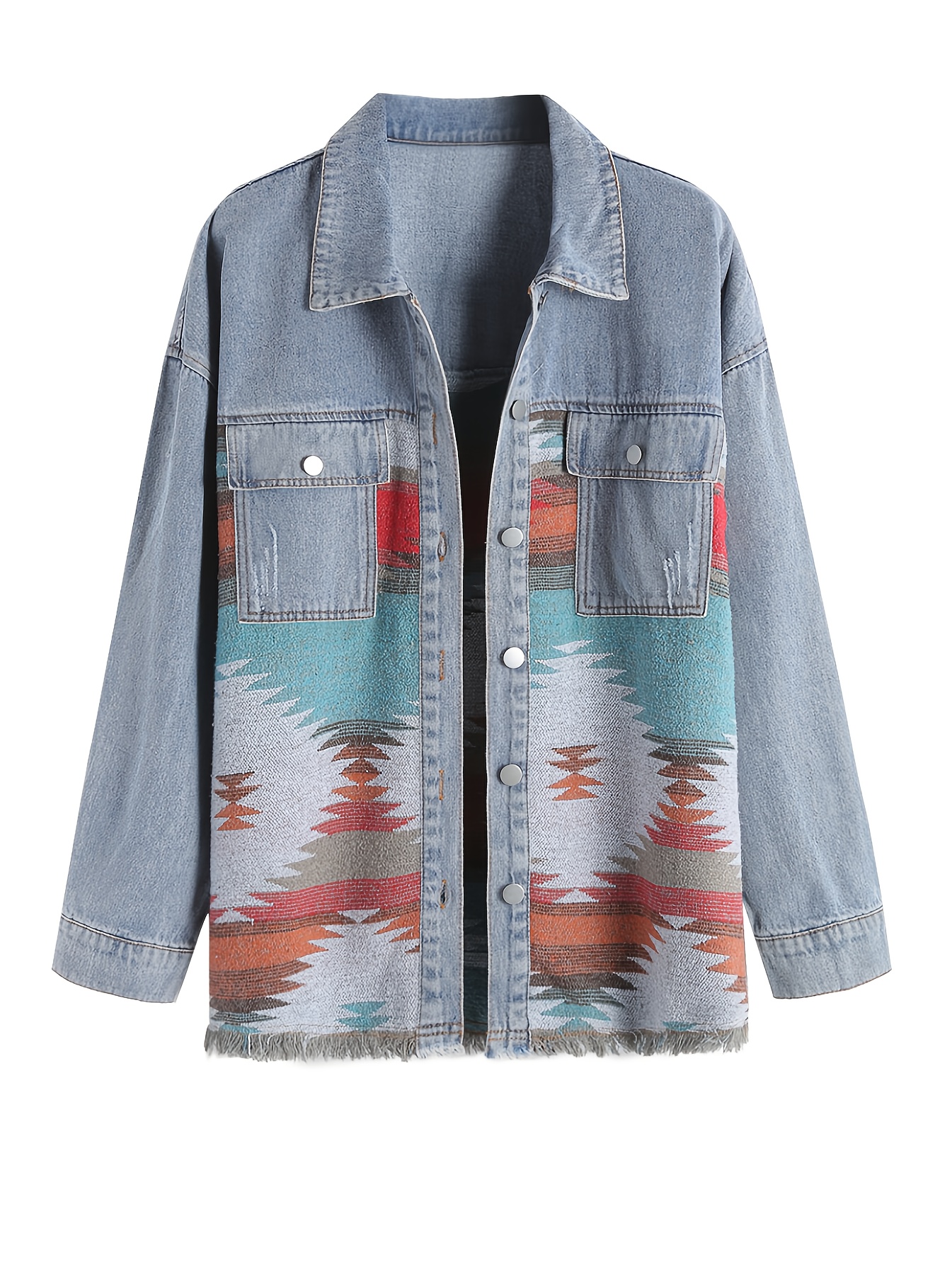 Uncategorized, WomenWomen’s Southwestern Aztec Print Fringe-Accent Shackles Button- Shirt Jacket – Turquoiseu002FOrangeu002FRedu002FBlacku002FWhite, Machine Washable Casual to Semi-Formal Outerwear, All-Season Layering Piece