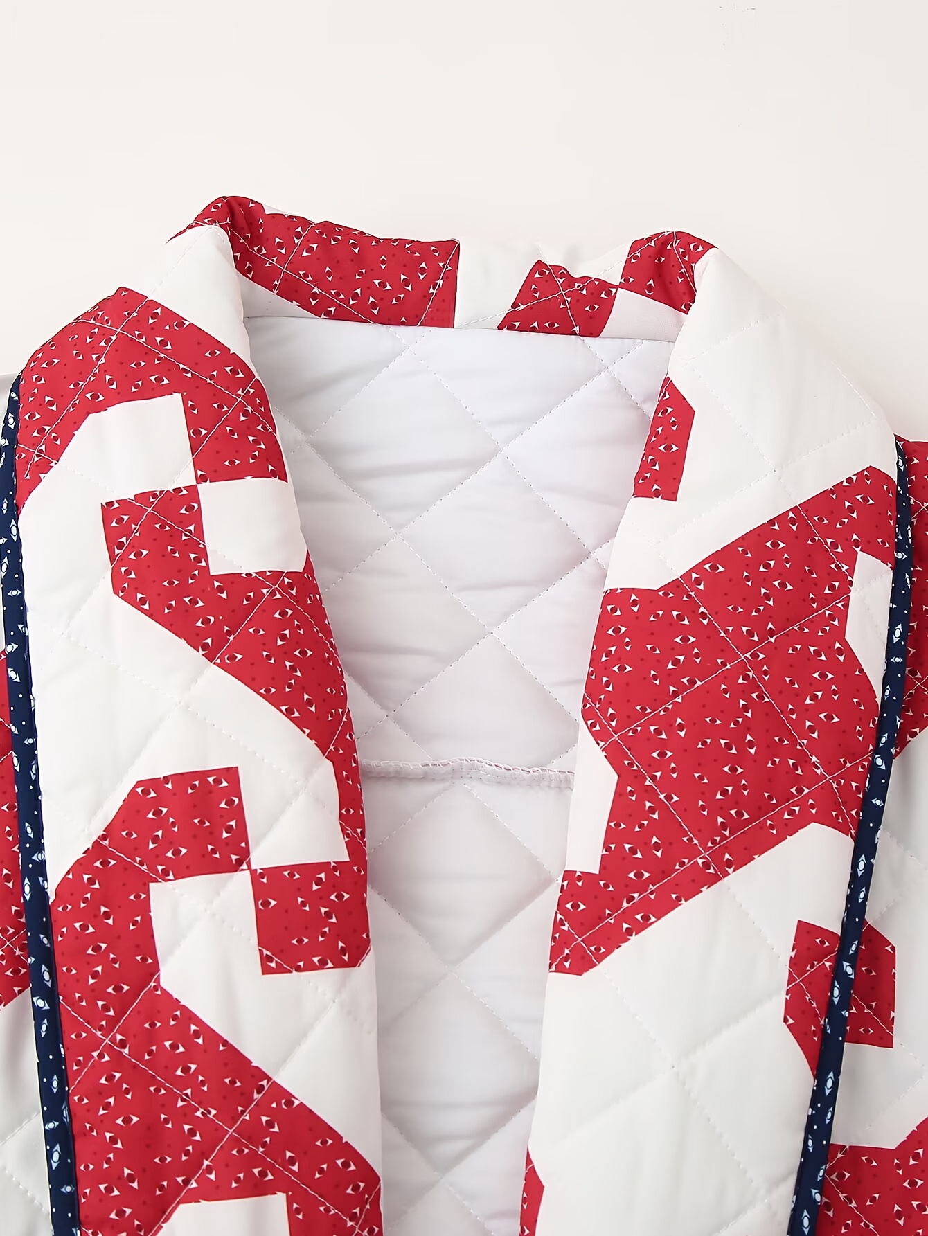 Be the first to review “Women’S Stylish Red & White Floral Print Quilted Jacket – Loose Fit Long Sleeve Coat with Puffy Shoulders, Black Trim, and Black Beanie Hat, Perfect for Fall Fashion, Autumn Outerwear | Puffy Shoulder Design | Quilted Texture” Cancel reply